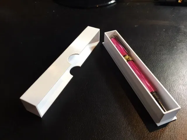 Một hộp nhỏ cho bút. Bút trong ảnh là bút Art Deco được chế tác bằng tay từ Penn State Industries.