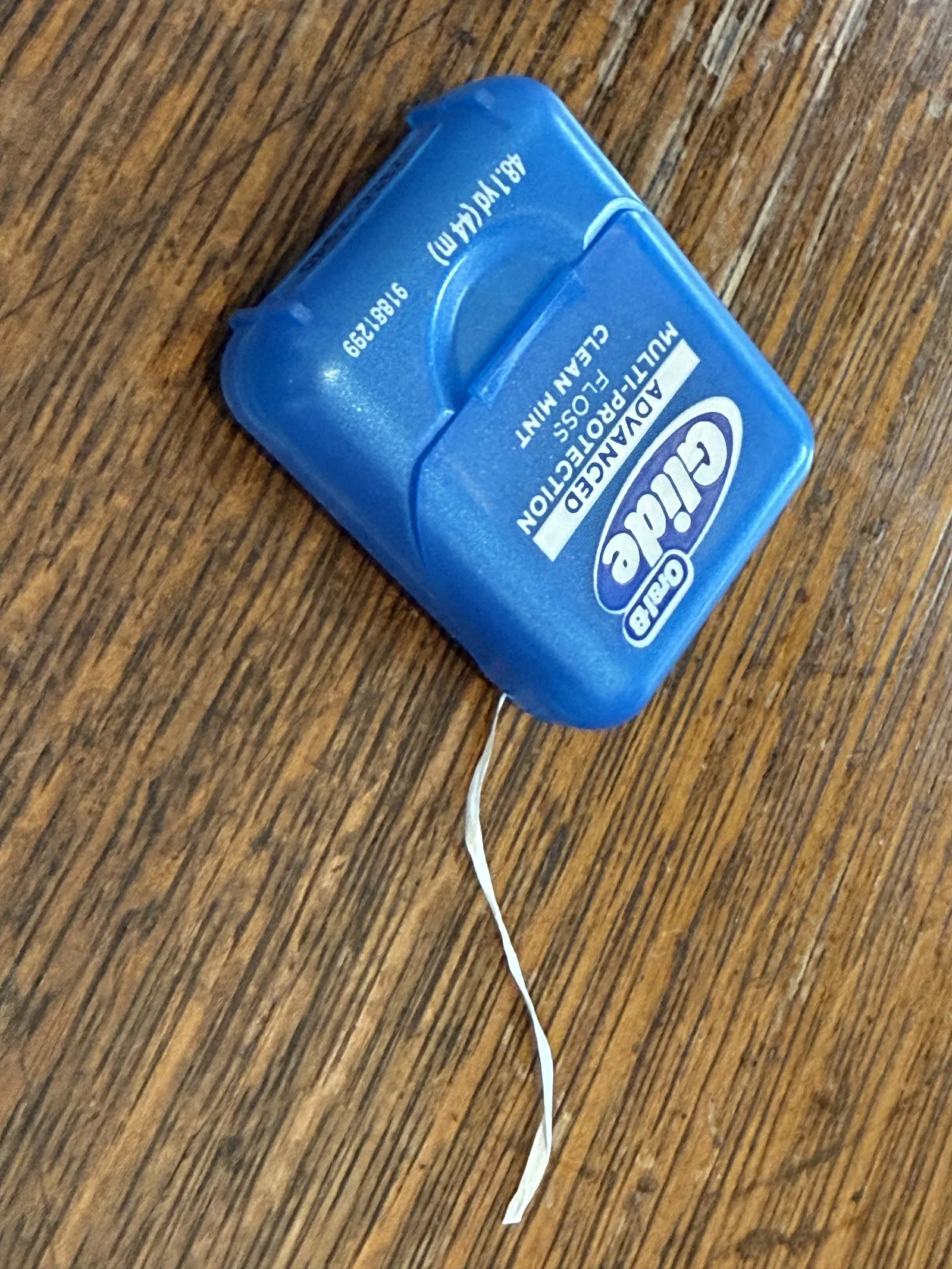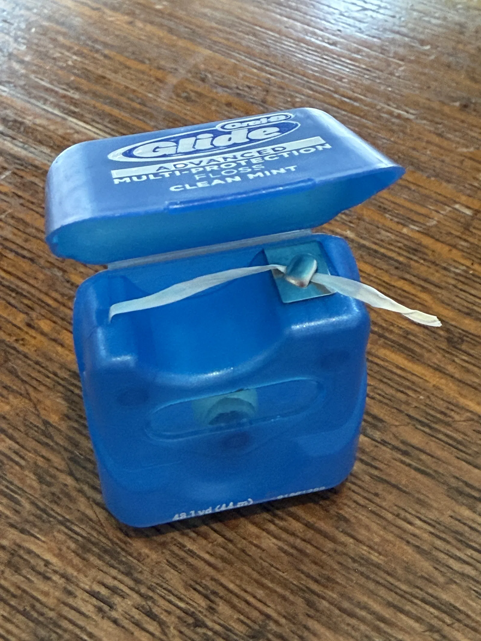 Phần khó nhất của dự án này chính là làm sao để cắt chỉ một cách nhanh gọn... nhưng tại sao phải mất công chế tạo lại từ đầu chứ? Vì vậy, mình đã tận dụng lại cái lưỡi cắt từ hộp chỉ nha khoa Oral B Advanced Glide Floss cũ đã sắp hết.