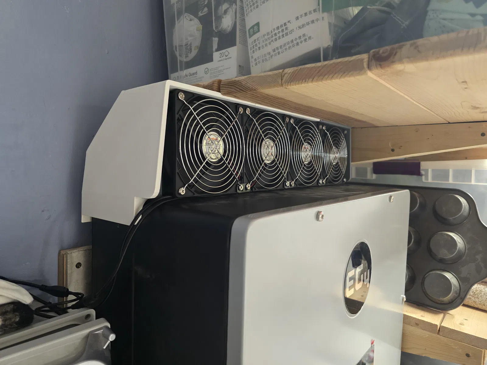 Đây là mẫu giá đỡ quạt tản nhiệt rời được tùy chỉnh lại từ thiết kế của wpns dành cho biến tần hybrid EG4 18kv. Thiết kế này giúp thổi khí nóng ra phía trước, phù hợp cho các không gian lắp đặt hạn chế và yêu cầu bảo vệ khỏi thời tiết.