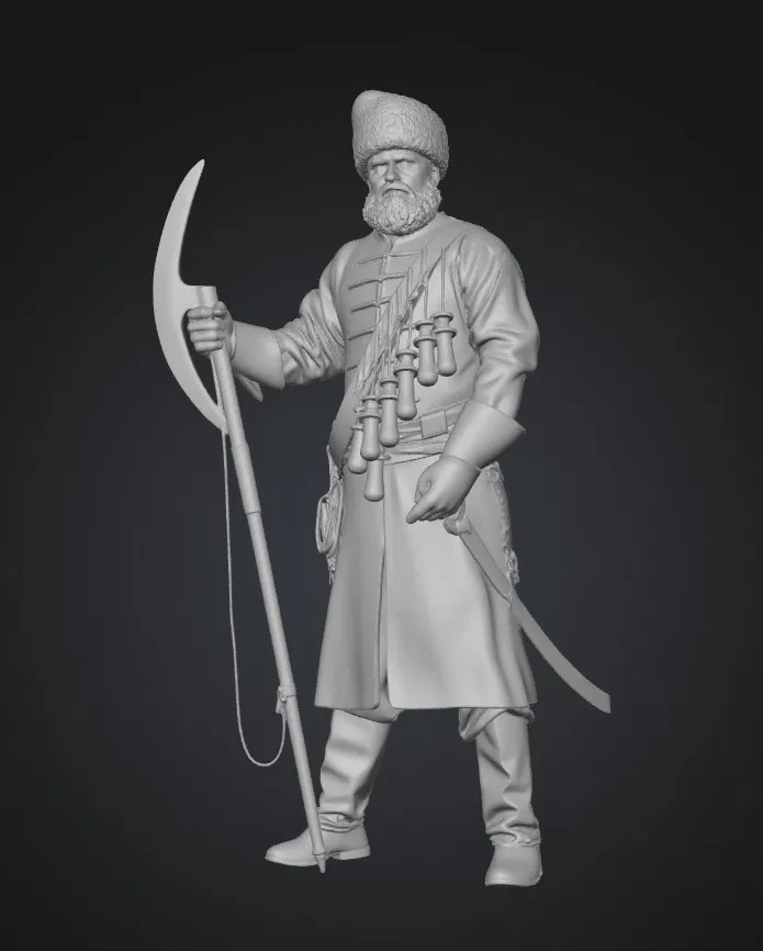 Nếu bạn là một người đam mê lịch sử quân sự hay thích sưu tầm các mô hình nhân vật độc đáo, thì mẫu "Russian Streletc with Crescent Blade" này chắc chắn sẽ làm bạn hài lòng. Đây là một tác phẩm mô phỏng lại hình ảnh một chiến binh Streletc của Nga thời xưa với chi tiết vô cùng sắc sảo. Từng đường nét từ bộ trang phục truyền thống, chiếc mũ lông cho đến lưỡi liềm đặc trưng trên tay chiến binh đều được tái hiện lại một cách chân thực nhất qua công nghệ in 3D hiện đại.