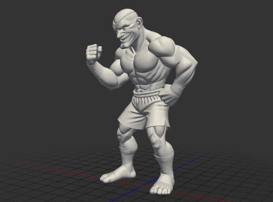 Bạn là fan của dòng game đối kháng huyền thoại Street Fighter và đang tìm kiếm một mô hình độc đáo để bổ sung vào bộ sưu tập của mình? Đây chính là file 3D của nhân vật Sagat được thiết kế theo phong cách hoạt hình (cartoon) cực kỳ ấn tượng. Với ngoại hình vạm vỡ, cơ bắp cuồn cuộn cùng biểu cảm gương mặt tinh quái, mô hình này chắc chắn sẽ trở thành điểm nhấn nổi bật trên bàn làm việc hay kệ trưng bày của bất kỳ người chơi nào.