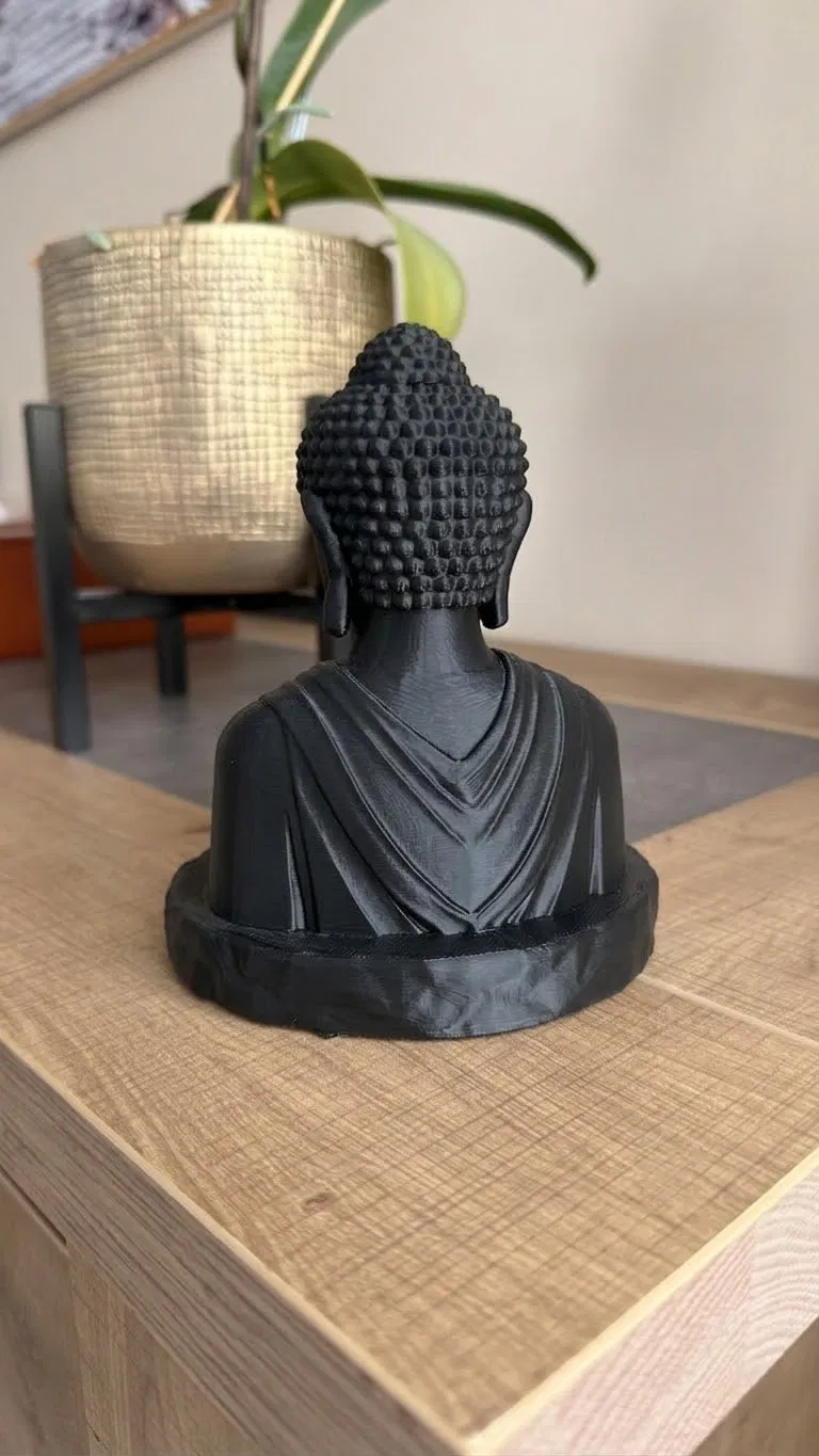 Một bức tượng bán thân Đức Phật đầy an yên, được thiết kế tinh tế để in 3D với vẻ đẹp thanh thoát, phù hợp cho không gian thiền định hoặc trang trí nội thất tối giản.