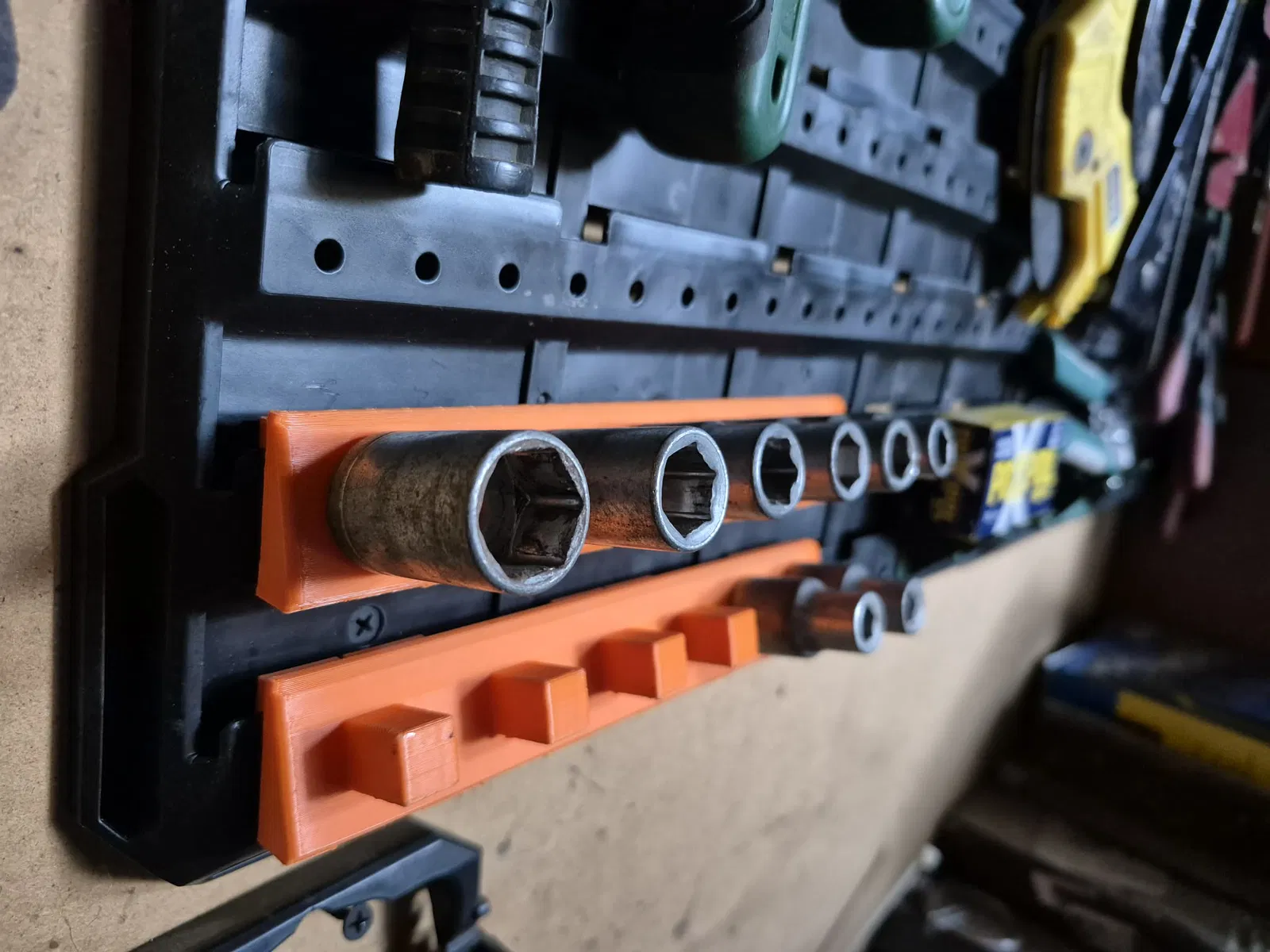 Giá đỡ đầu tuýp 1/2" được thiết kế chuyên biệt cho hệ thống treo tường Parkside Organiser. Phụ kiện này giúp xưởng của bạn gọn gàng hơn, giữ các đầu tuýp ngăn nắp, dễ tìm và dễ lấy. Sản phẩm tương thích với ray treo Parkside, hỗ trợ in bằng PETG để đạt độ bền tối ưu.