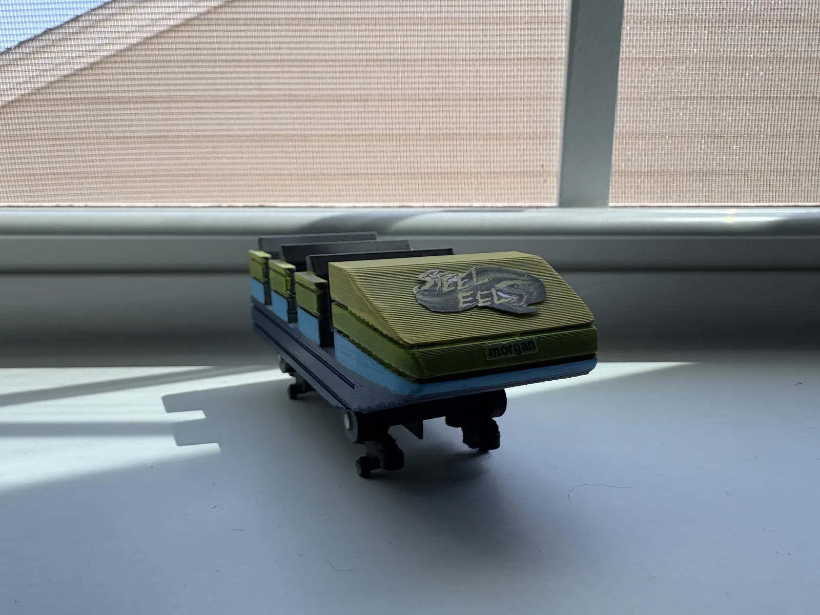 Đây là mô hình của Steel Eel, một dòng tàu lượn hypercoaster của Morgan/Chance Rides tại công viên SeaWorld San Antonio. Mô hình này được thiết kế dựa trên vẻ ngoài đặc trưng của Steel Eel, nhưng bạn hoàn toàn có thể thay đổi hoặc phối lại màu sắc để phù hợp với các dòng tàu lượn Morgan/Chance khác. Một số chi tiết của thiết kế thực tế đã được tinh chỉnh lại để quá trình in ấn dễ dàng hơn.