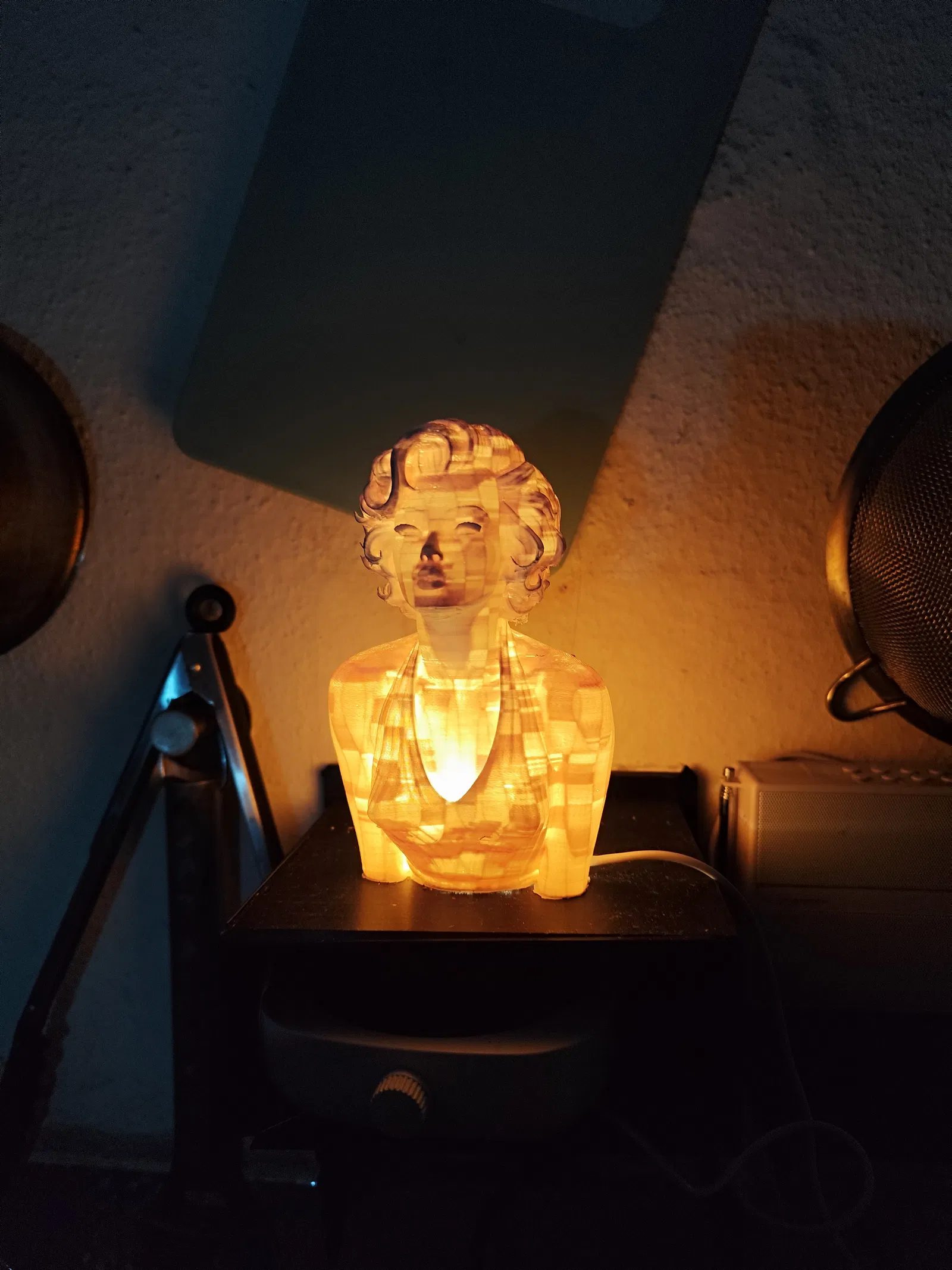 Bạn là một người hâm mộ biểu tượng điện ảnh huyền thoại Marilyn Monroe? Bạn đang tìm kiếm một món phụ kiện trang trí vừa đẹp mắt, vừa tiện ích cho bàn làm việc hoặc không gian sống của mình? Mẫu in 3D này chính là lựa chọn hoàn hảo dành cho bạn. Đây là mô hình tượng bán thân của Marilyn Monroe với thiết kế rỗng bên trong, cho phép bạn lắp đặt đèn LED USB bên dưới để tạo thành một chiếc đèn ngủ nghệ thuật lung linh, huyền ảo.