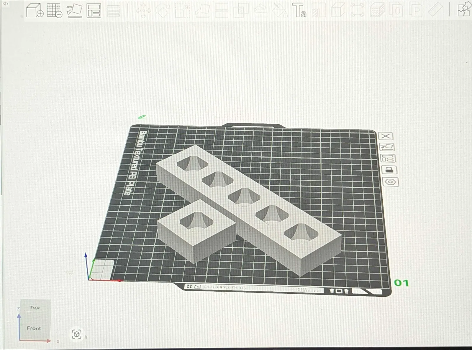 Hỗ trợ (Supports): Chỉ cần cho phần ray (khuyên dùng đặt mặt ray đối diện nhau nếu in hai cái cùng lúc; sử dụng hỗ trợ dạng cây - tree supports). Các khớp nối âm trên thanh di trùng không bắt buộc phải có hỗ trợ nhưng có thể dùng để mặt đáy phẳng và đẹp hơn.