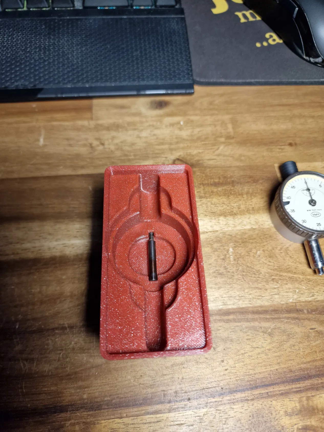 Mình vừa thiết kế xong một cái đế giữ (holder) rất đẹp cho một chiếc đồng hồ so Mahr đời cũ mà mình đã cứu được từ bãi phế liệu. Vì không tìm thấy thông tin cụ thể và các dòng máy hiện đại của Mahr cũng không khớp với kích thước của chiếc đồng hồ này, nên mình đã tự tay thiết kế riêng cho nó.