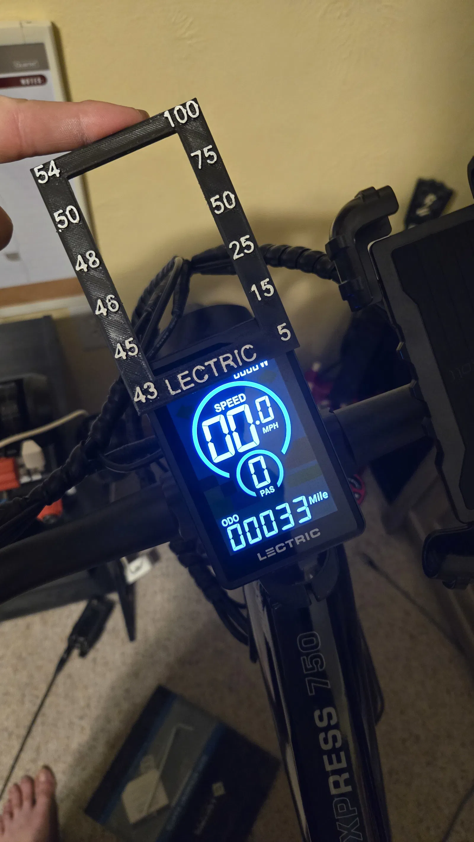 Ốp bảo vệ màn hình cho Lectric Xpress hoặc Xpeak (chưa thử nghiệm trên các dòng khác), được thiết kế để hiển thị trạng thái sạc thực tế của pin. Tất cả các mức điện áp đều được làm tròn xuống số nguyên gần nhất để đảm bảo an toàn cho pin. Tôi từng thấy các phiên bản khác nhưng chúng hiển thị quá nhiều thông tin gây mất tập trung. Bản thiết kế này rất đơn giản để bạn biết rằng: “Mình đang còn từ 50% đến 75% pin và gần mức 50% hơn”. Sản phẩm này có độ ôm sát rất khít. Của tôi được làm theo kích thước cố định nên tôi không có ý định tháo ra. Nếu bạn muốn lỏng hơn một chút, hãy tăng kích thước in thêm từ 0.5% đến 1%.