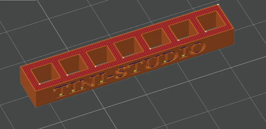 - Hỗ trợ (Support): Do thiết kế các ngăn rỗng cơ bản nên thường không cần dùng support, tuy nhiên anh chị hãy kiểm tra kỹ phần chữ nổi phía trước để đảm bảo máy in không bị lỗi khi in phần overhang nhé.