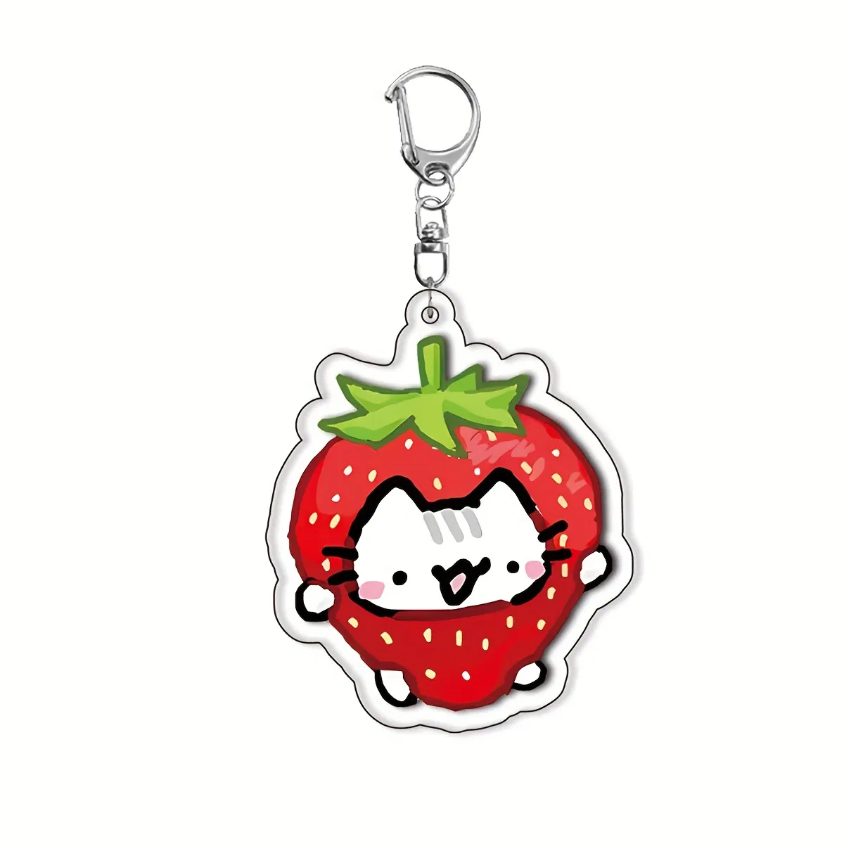 Bạn đang tìm một món phụ kiện nhỏ xinh để tô điểm cho chiếc chìa khóa, túi xách hay balo của mình? Mẫu móc khóa hình chú mèo ẩn mình trong quả dâu tây (Cute cat strawberry Keychain) chính là lựa chọn hoàn hảo dành cho bạn. Với thiết kế cực kỳ đáng yêu, chú mèo trắng tinh nghịch cùng đôi má hồng hiện ra từ trong quả dâu tây đỏ mọng sẽ khiến bất cứ ai nhìn thấy cũng phải mỉm cười. Đây là một món đồ trang trí đơn giản nhưng lại cực kỳ bắt mắt, giúp các món đồ cá nhân của bạn trở nên nổi bật và mang đậm phong cách cá tính riêng.