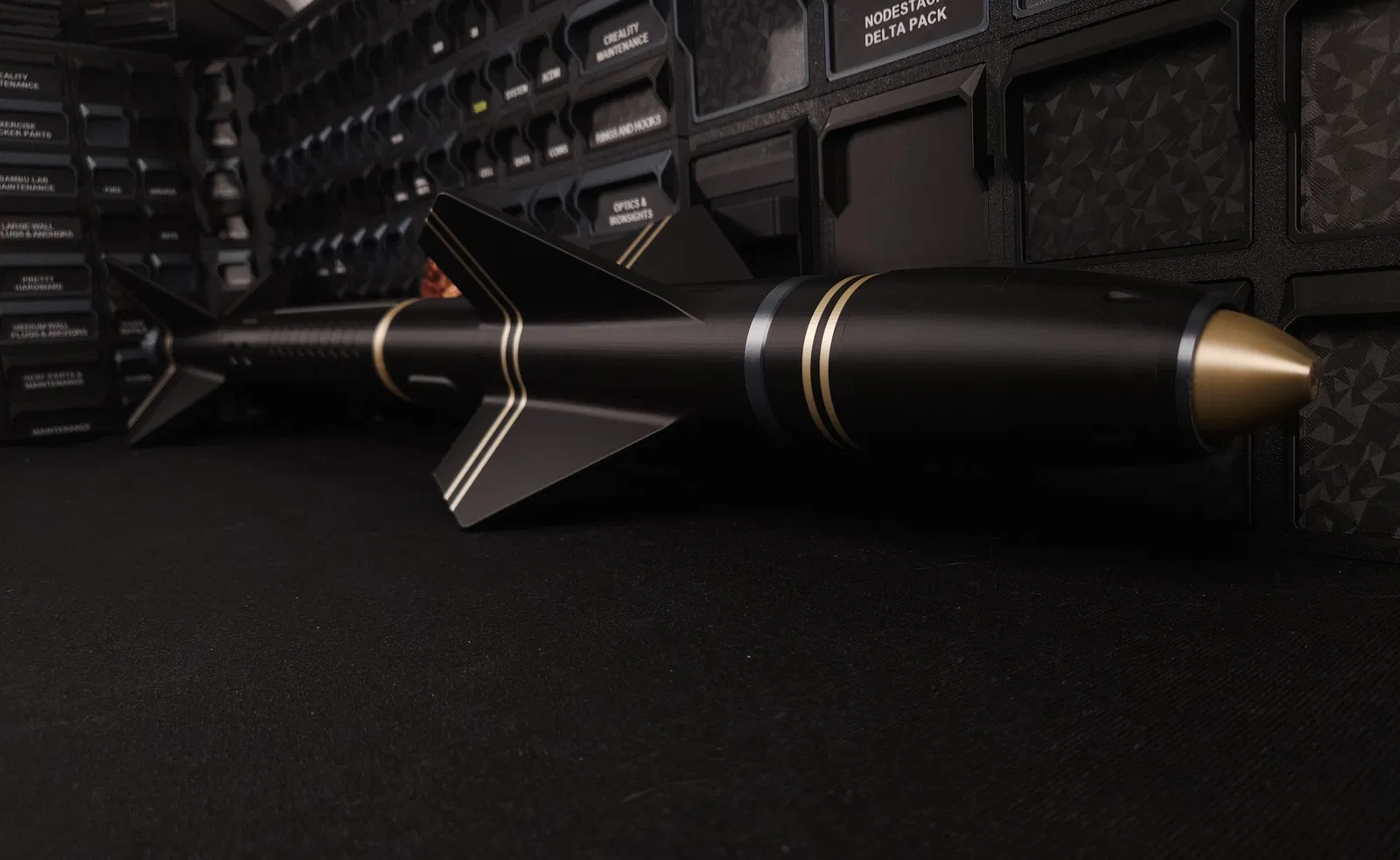 VTR-02 là tác phẩm nghệ thuật treo tường mô phỏng tên lửa theo phong cách sci-fi với chiều dài 110 cm. Thiết kế in 3D lắp ghép thông minh, không cần support, mang lại điểm nhấn ấn tượng và hiện đại cho không gian nội thất của bạn.
