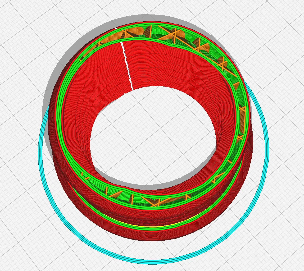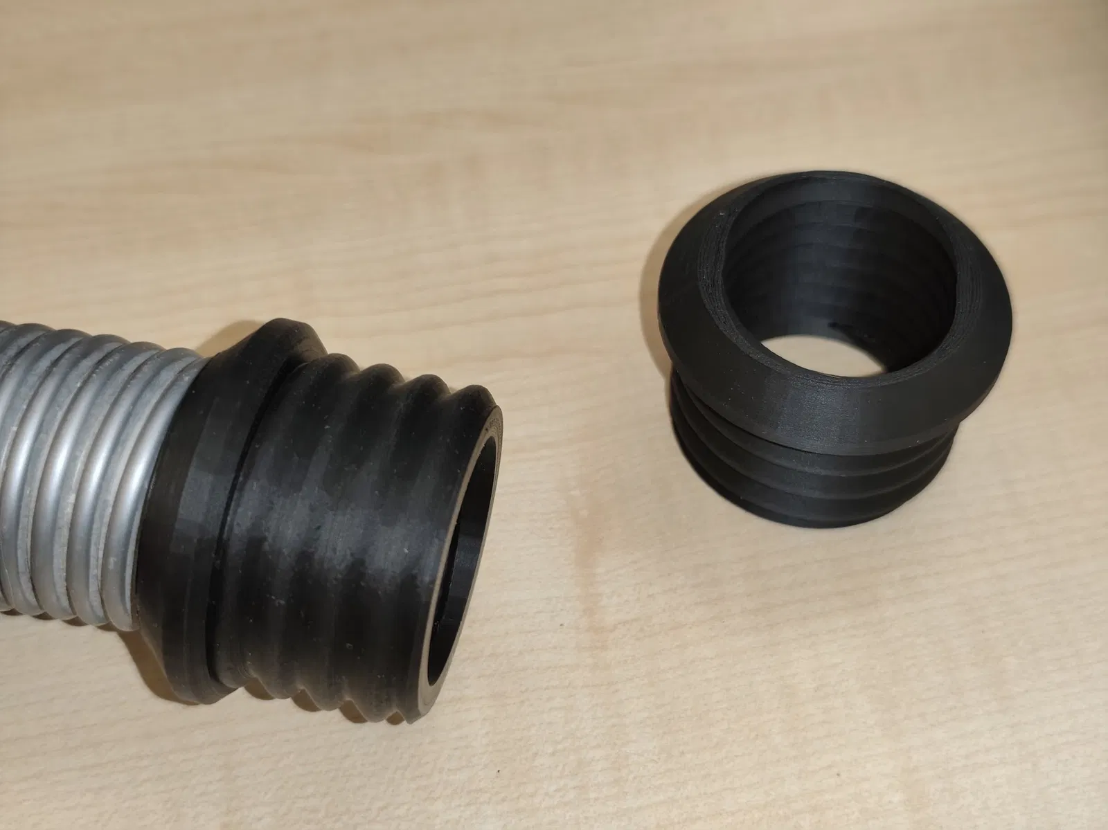 Mình muốn tận dụng mấy cái ống hút bụi cũ trong xưởng để làm dự án tái chế, đồng thời cũng để tiết kiệm chi phí thay vì phải mua ống mới đắt tiền. Mình đã in thử bộ chuyển đổi của Kipnugget sang khớp nối Camlock, nhưng trong khi nó vừa với một loại ống mình đang có, thì hai loại ống của máy hút bụi Bosch và Siemens lại không khớp vào ren được. Sau khi kiểm tra kỹ, mình phát hiện ra những loại ống cứng cáp này không sử dụng bước ren khoảng 5mm mà là thiết kế hai ren xoắn lồng vào nhau với bước ren khoảng 10mm. Mình xin gửi lời cảm ơn chân thành đến MGyula vì đã hỗ trợ mình giải quyết vấn đề tương tự trên mẫu ốc sửa chữa ống hút bụi tham số của anh ấy, vốn đã được mình dùng để "cắt" phần ren bên trong. Vì ren trong và ren ngoài có bước khác nhau, sẽ có những chỗ chỉ có tổng cộng 4 lớp vỏ thay vì 5 lớp như thiết kế của Kipnugget. Tuy nhiên, vì nó nằm ở phần đầu khớp nối Camlock nên độ bền vẫn hoàn toàn đảm bảo. Mình đã in với độ dày 3 lớp vỏ để gia cố thêm cho các khu vực xung quanh (xem thêm hình ảnh slicer).