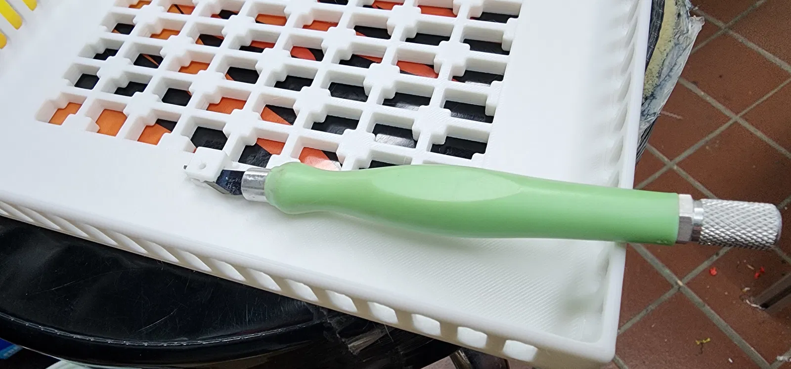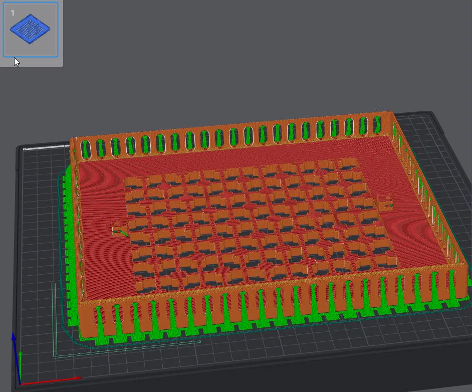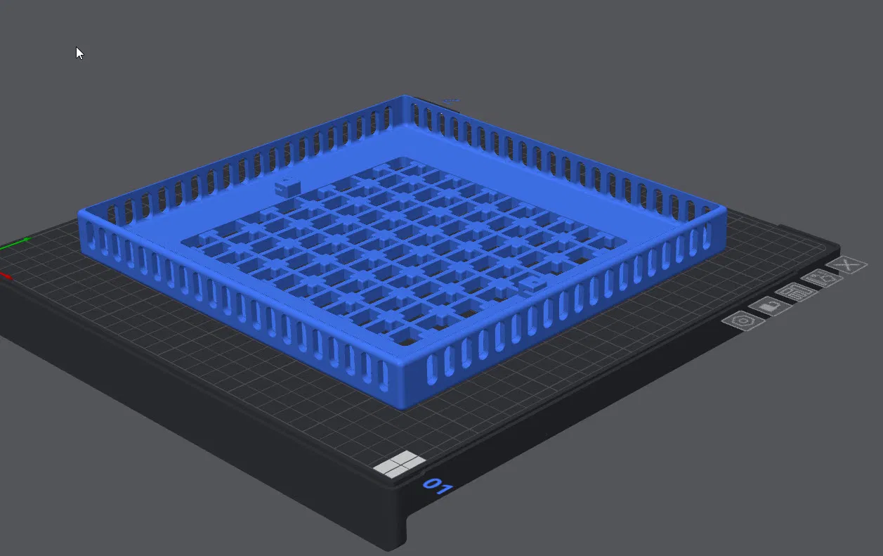 Khi in, đặt úp mặt nắp xuống, không cần support. Chất liệu khuyên dùng là PLA, độ phân giải 0.1-0.2LH, infill adaptive cubic 40%, 2 tường (walls).
