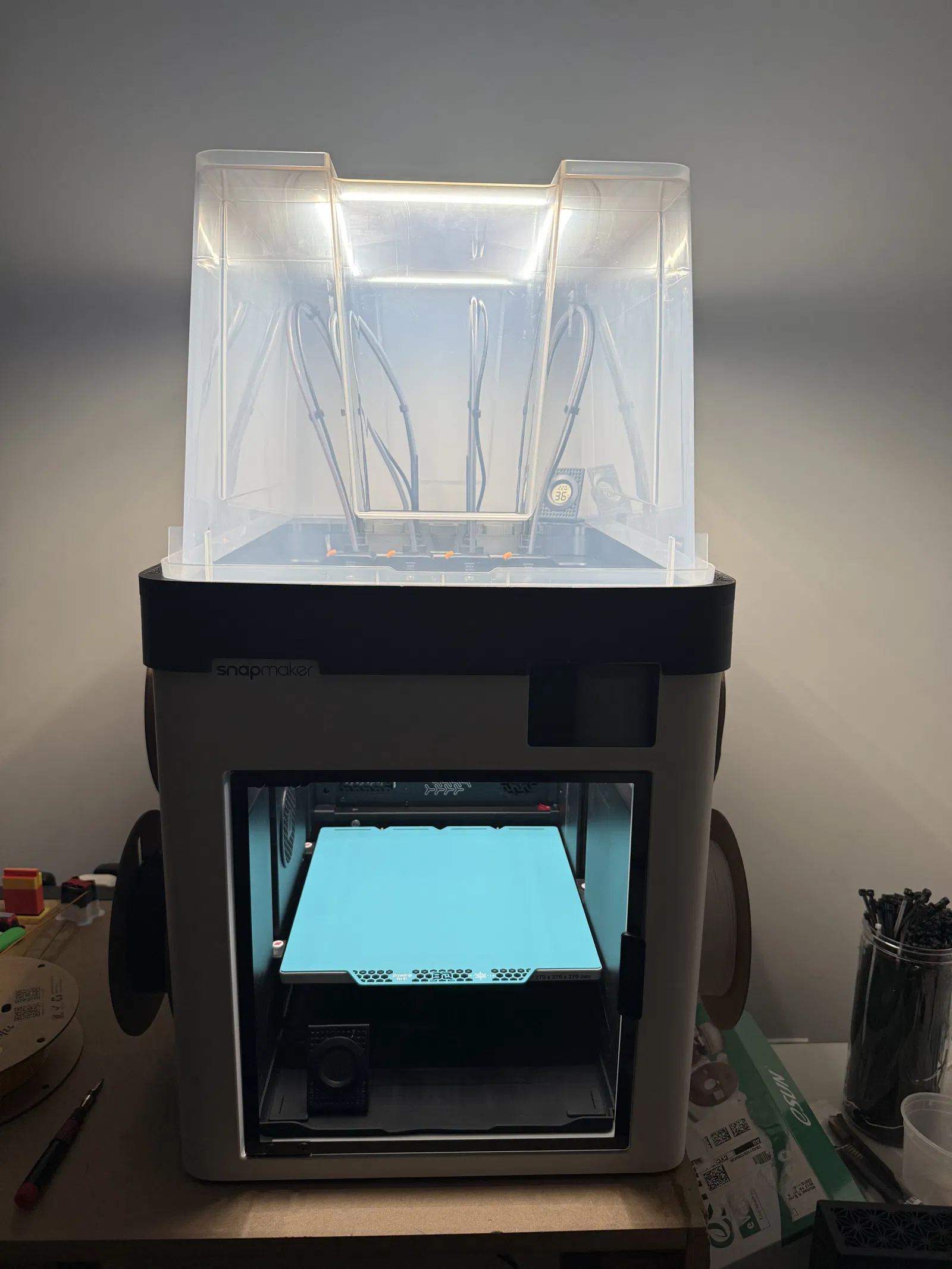 Bộ ngàm kẹp tiện lợi giúp bạn lắp đặt dải đèn LED lên nắp thùng Samla của máy in Snapmaker U1. Thiết kế dễ in, vừa vặn và giúp tối ưu ánh sáng cho không gian làm việc của bạn.