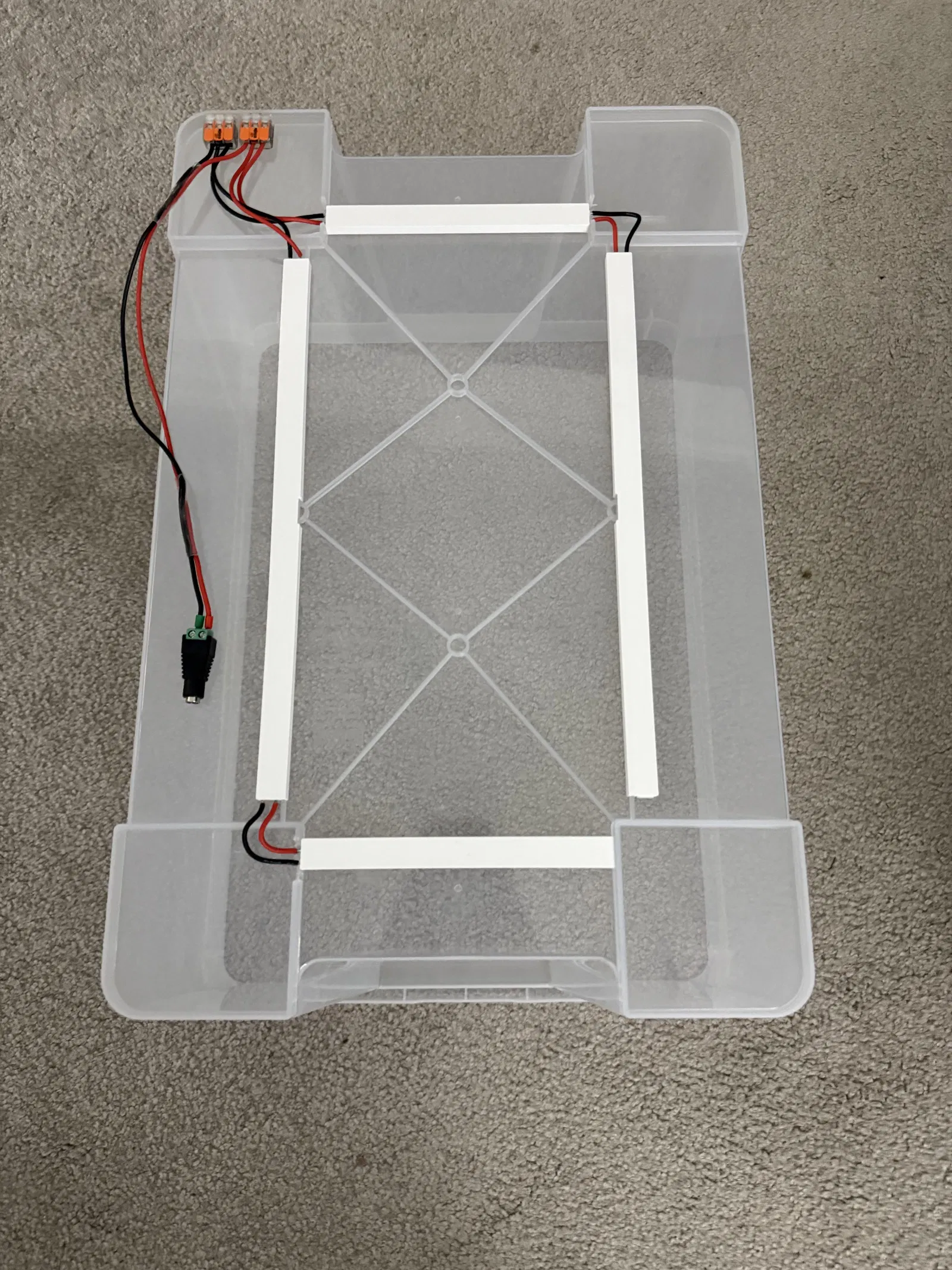 Bạn hãy cắt 2 đoạn 300mm và 2 đoạn 150mm (loại đèn LED này có điểm cắt cách nhau 50mm), hàn các dải đèn lại, rồi gắn vào ngàm (thiết kế khá khít). Sau đó lắp vào các gân nhựa trên nắp thùng Samla. Có thể bạn sẽ cần cắt bớt một chút phần gân nhựa xung quanh vị trí đoạn 150mm để luồn dây điện ra vào.