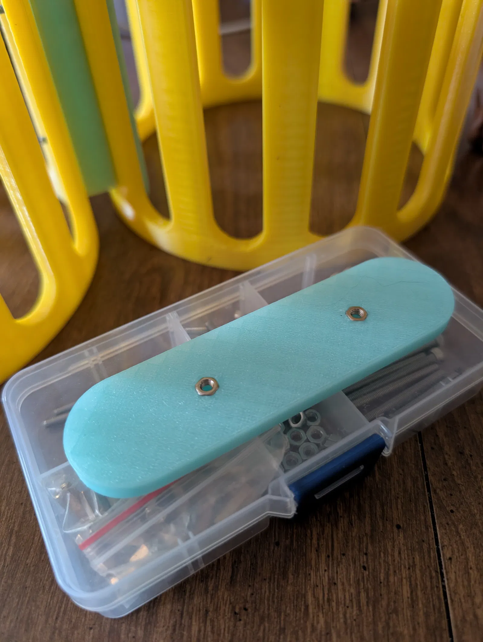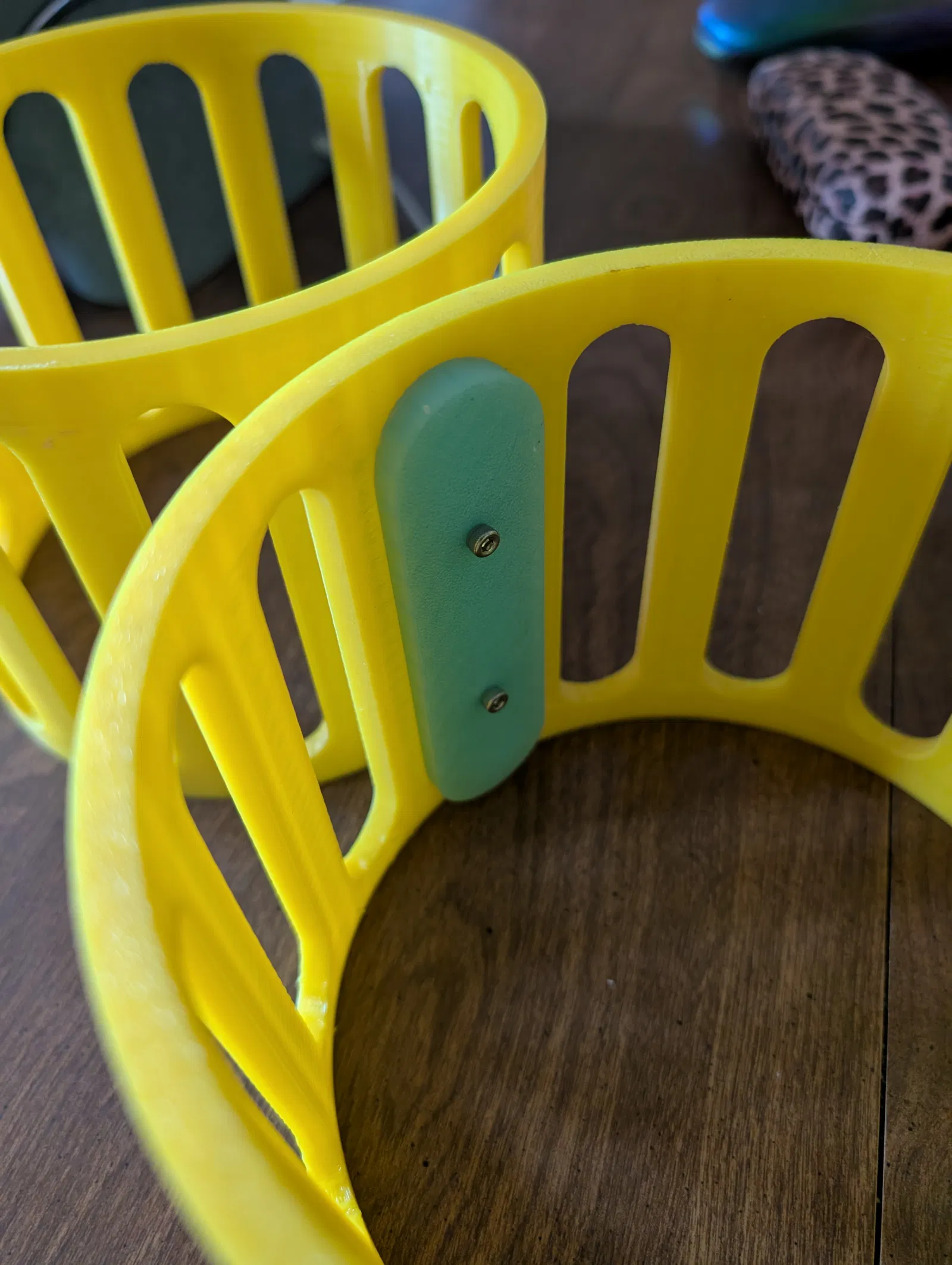 Mẫu này được thiết kế với các phần đỡ bát đơn, có thể ghép nối lại với nhau bằng đầu nối trung tâm và hai mặt bích. Bạn sẽ cần hai ốc vít đầu trụ (socket head cap screw) dài 35mm đường kính 3mm cùng với đai ốc tương ứng. Phần đầu ốc sẽ nằm âm trong kẹp A, còn đai ốc sẽ nằm âm trong kẹp B. Bạn có thể in và lắp ráp bao nhiêu phần tùy thích để phù hợp với nhu cầu sử dụng.