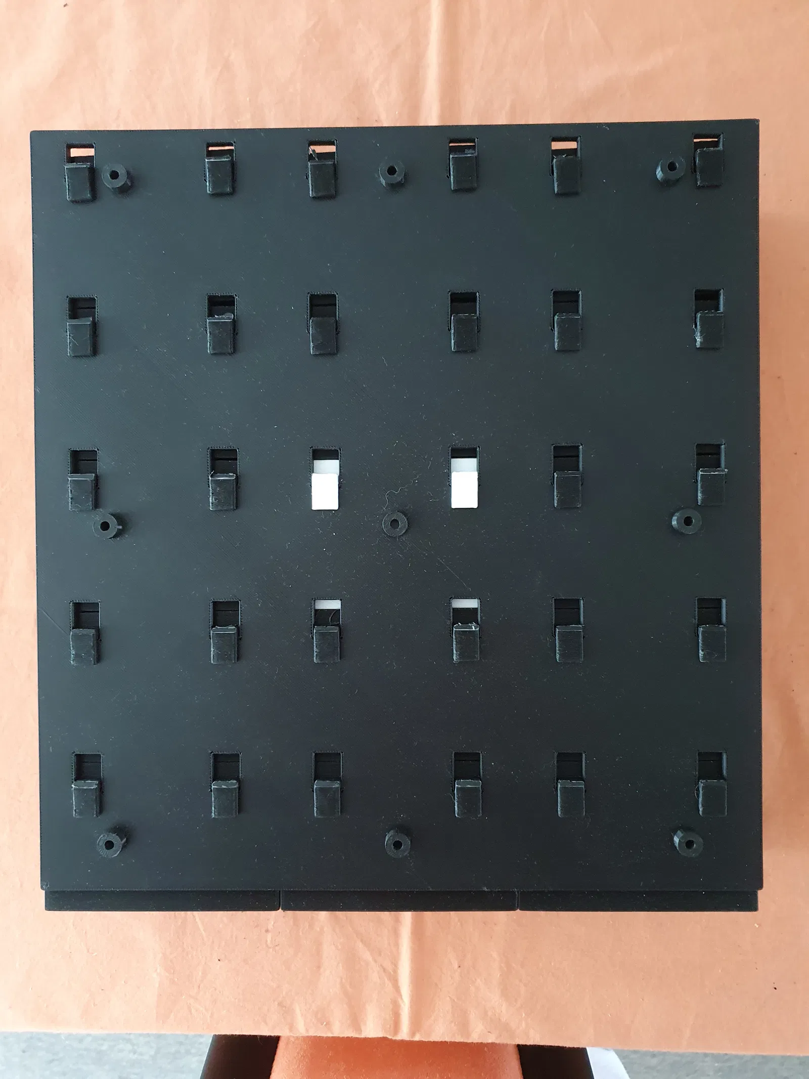 Ban đầu mình thiết kế phiên bản "standalone" (để bàn) của chiếc hộp này vì cần đựng tăm và bông ngoáy tai. Sau đó, mình nảy ra ý tưởng làm một cái bảng treo tường để có thể gắn nhiều hộp lên đó. Như các bạn thấy, cái bảng này có thể chứa tối đa 15 hộp.