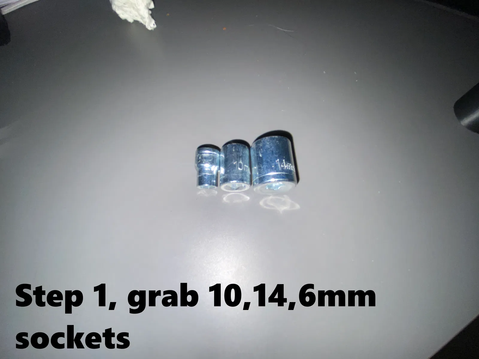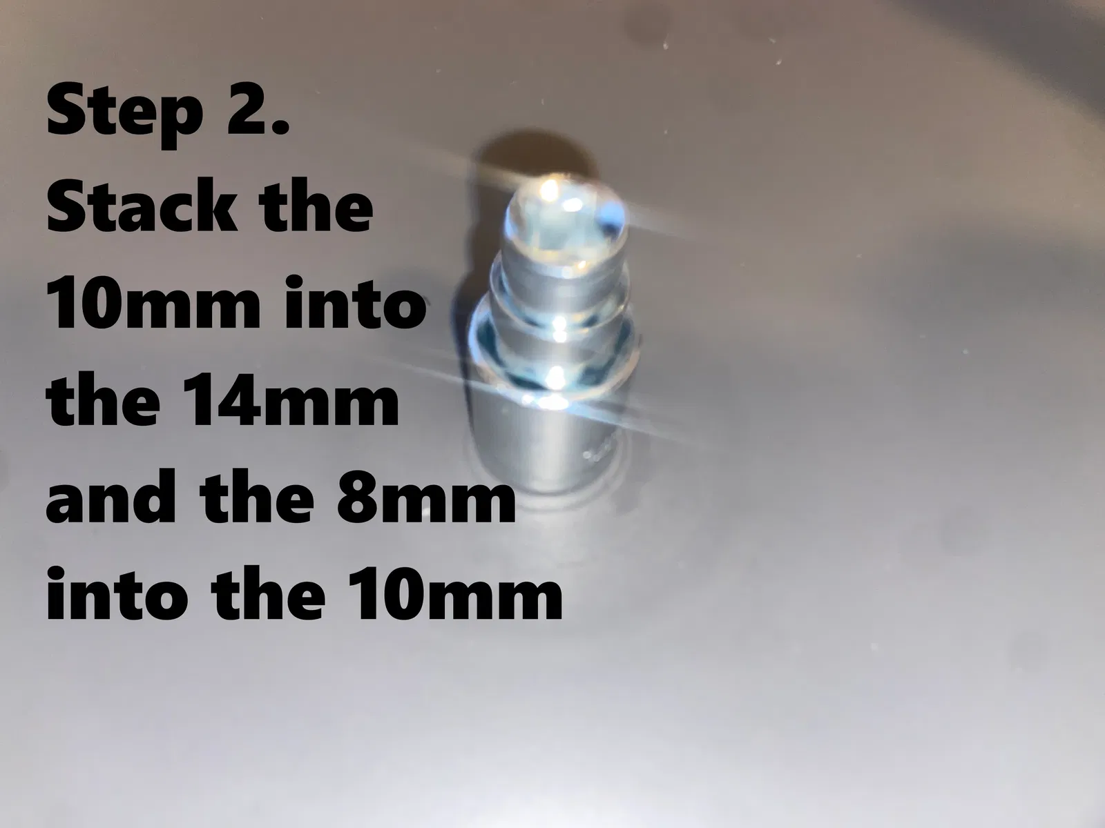 - Lấy đầu tuýp 14mm, lồng đầu 8mm vào bên trong, sau đó đặt đầu 6mm vào trong đầu 8mm theo hướng ngược lại.