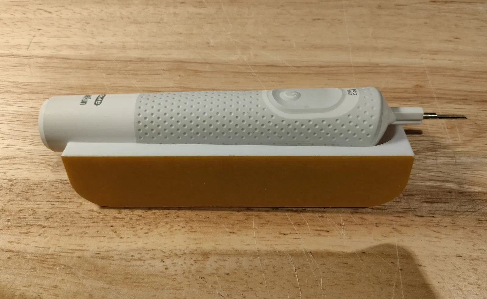 Có người nhờ mình thiết kế một cái giá treo ngang lên tường để đựng bàn chải điện Oral-B loại 3710, vì họ cần cất trong cái tủ rất hẹp. Đây đúng là một nhu cầu khá đặc thù, nhưng mình vẫn quyết định chia sẻ lên đây phòng khi có ai đó cần dùng đến.