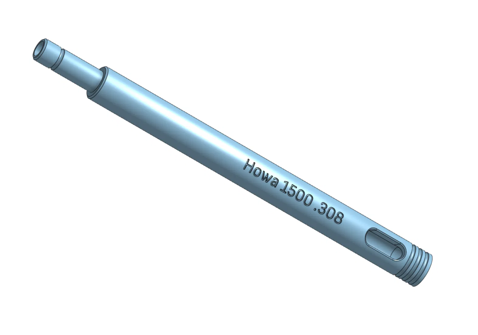 Bore guide hỗ trợ vệ sinh nòng cho súng Howa 1500 cỡ đạn .308 Winchester. Trước đây mình có thử qua một mẫu thiết kế cho cỡ .308 nhưng chủ yếu dành cho dòng Remington 700, mình thấy đường kính hơi lớn hơn vài zem so với nòng của Howa. Vì vậy, mình quyết định tự thiết kế một mẫu riêng biệt cho dòng súng này. Lưu ý rằng khi in đúng kích thước chuẩn, thiết kế có thể hơi chặt một chút do phần gờ của đường chỉ nhựa (print seam). Bạn chỉ cần dùng giấy nhám chà nhẹ vài đường là êm ngay. Thiết kế này có độ hở gần như tương đương với bolt súng, một khoảng hở khá đáng kể.