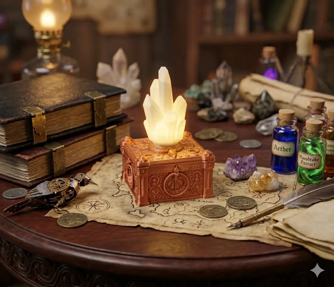 Hộp pha lê ma thuật sở hữu năng lực đáng kinh ngạc trong việc khuếch đại, tập trung và truyền dẫn năng lượng cũng như ý định, từ đó mở khóa những hiệu ứng kỳ diệu khó tin. Nằm ở trung tâm rực rỡ của nó là một viên pha lê ma thuật độc đáo, đóng vai trò như cầu nối dẫn dắt các luồng năng lượng tự nhiên và thần thánh lan tỏa khắp vũ trụ. Sức mạnh của chiếc hộp pha lê này chỉ bị giới hạn bởi kỹ năng và trí tưởng tượng của người dùng, đây là một vật phẩm then chốt trong rất nhiều truyền thuyết và cổ tích.