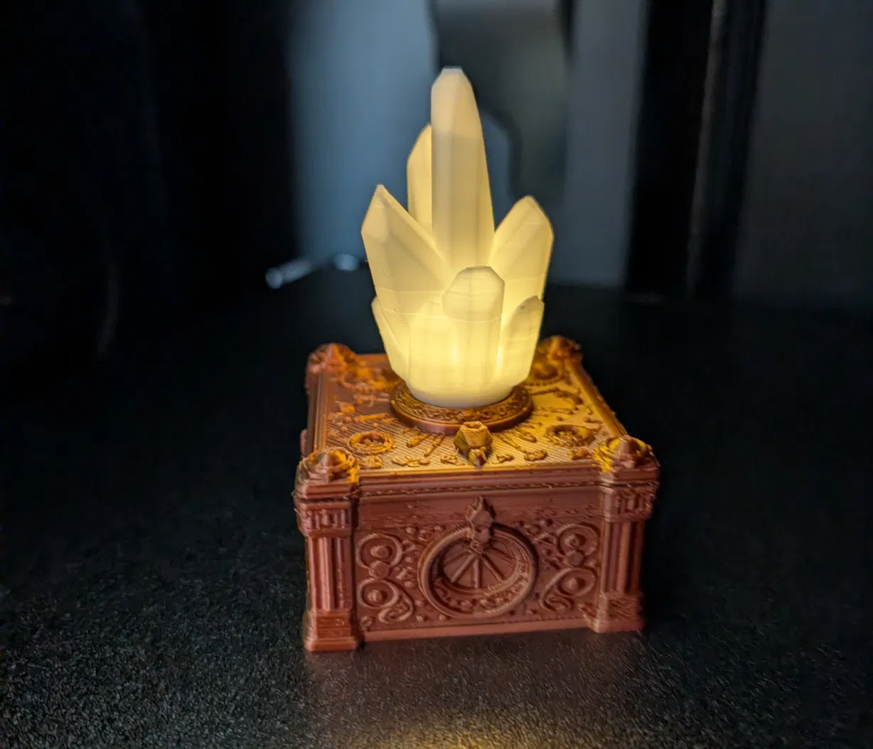 Một chiếc hộp pha lê ma thuật độc đáo được thiết kế để chứa nến trà. Sản phẩm này có thiết kế đặc biệt với khả năng tùy biến cao, tuy nhiên người in cần lưu ý phần tháo support trên nắp vì có thể hơi khó khăn một chút.