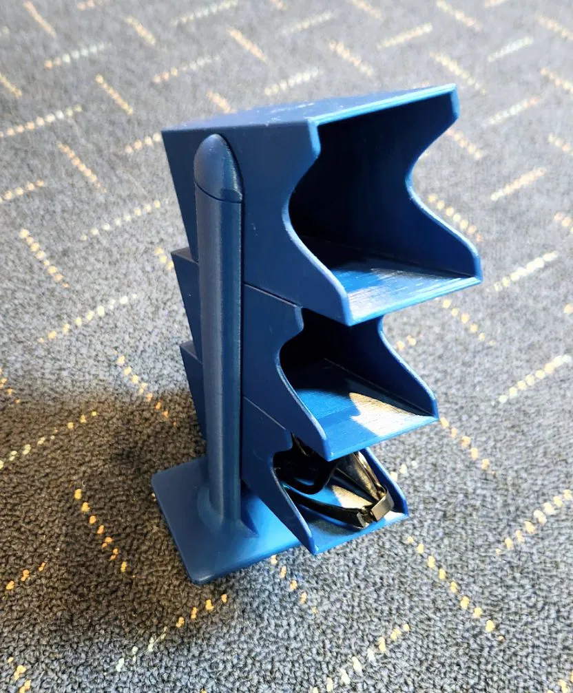 Chiếc kệ để mắt kính tiện lợi này giúp bạn sắp xếp gọn gàng tối đa 3 cặp kính. Thiết kế thông minh với góc nghiêng 35 độ và khả năng chồng tầng linh hoạt, sử dụng khớp nối đuôi én chắc chắn. Sản phẩm phù hợp cho máy in 3D với độ hoàn thiện cao.