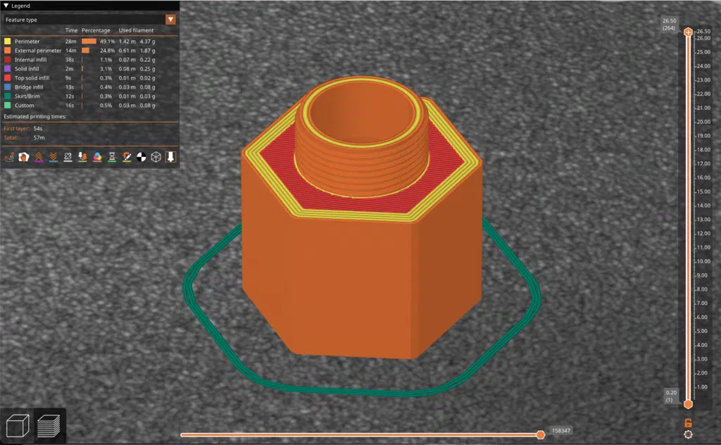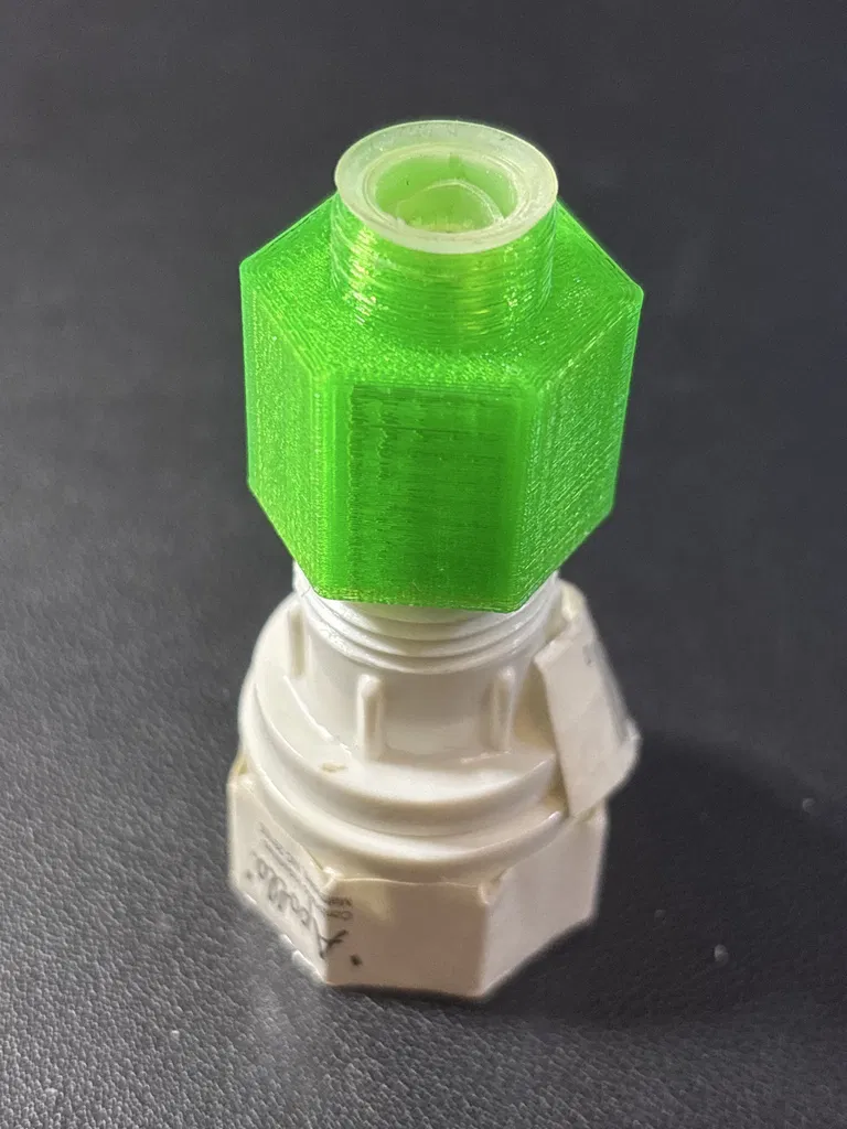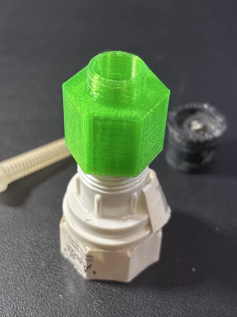 Đây là mẫu thay thế cho đầu nối Rainbird PA-8S dùng cho các béc phun sương dạng shrub. Ren ngoài ở phía trên là loại ren đặc biệt có kích thước 5/8 inch, 28 TPI (ren trên mỗi inch). Phần ren trong 1/2 inch NPT có các đoạn nhô ra khá dốc, vì vậy bạn bắt buộc phải dùng chiều cao lớp in (layer height) thật mỏng để tránh hiện tượng tách lớp đường biên. Để in được một chi tiết hoạt động tốt, hãy in chậm bằng nhựa PETG hoặc ABS/ASA với chiều cao lớp 0.1 mm.