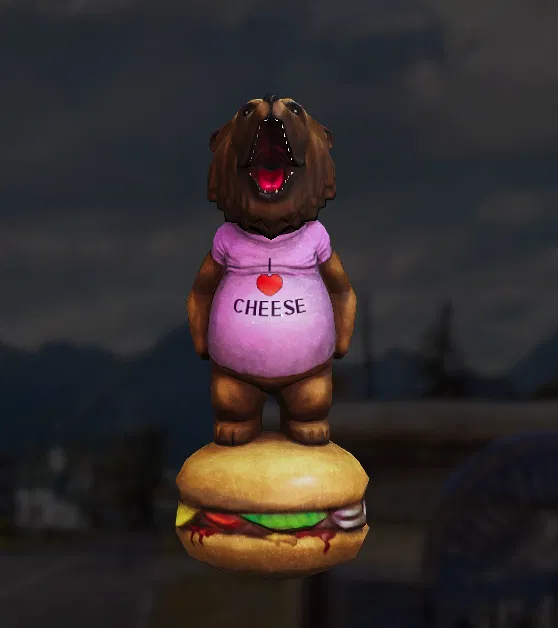 Nếu anh em là một fan cứng của tựa game Far Cry 5 đình đám, chắc hẳn không thể nào quên được bức tượng chú gấu mang tính biểu tượng đứng trên chiếc bánh burger khổng lồ tại vùng Hope County. Mô hình 3D này tái hiện chân thực hình ảnh chú gấu với chiếc áo hồng có dòng chữ "I love cheese" đầy hài hước và ấn tượng. Đây không chỉ là một món đồ trang trí đơn thuần mà còn là biểu tượng tinh thần, gợi nhắc lại những kỷ niệm khó quên trong hành trình khám phá thế giới game đầy kịch tính của chúng ta.