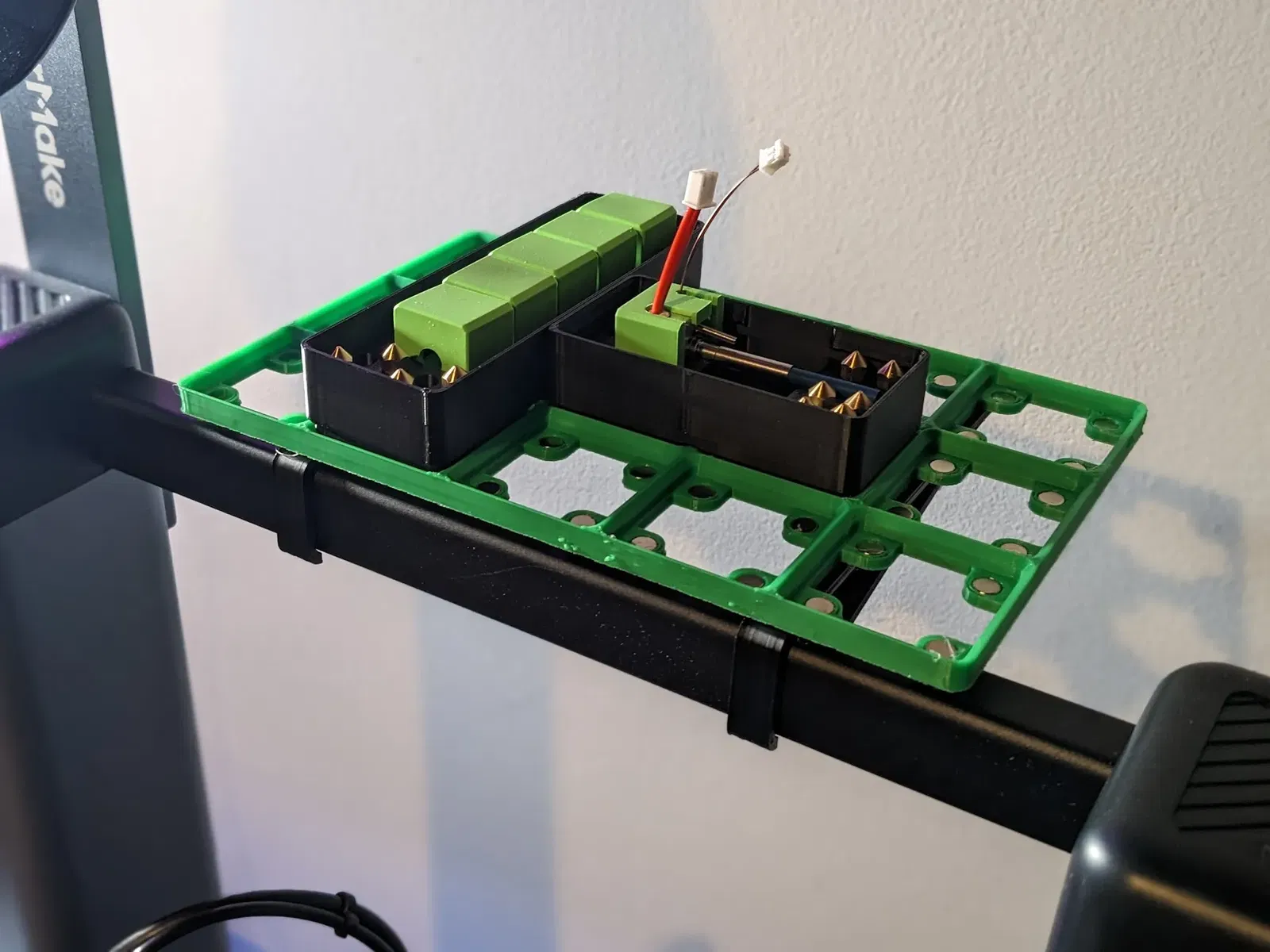 Một khay lưới 3x5 có trọng lượng nhẹ với các chèn từ tính để giữ nguồn cung cấp cho ankermake! Clip đến giàn hàng đầu