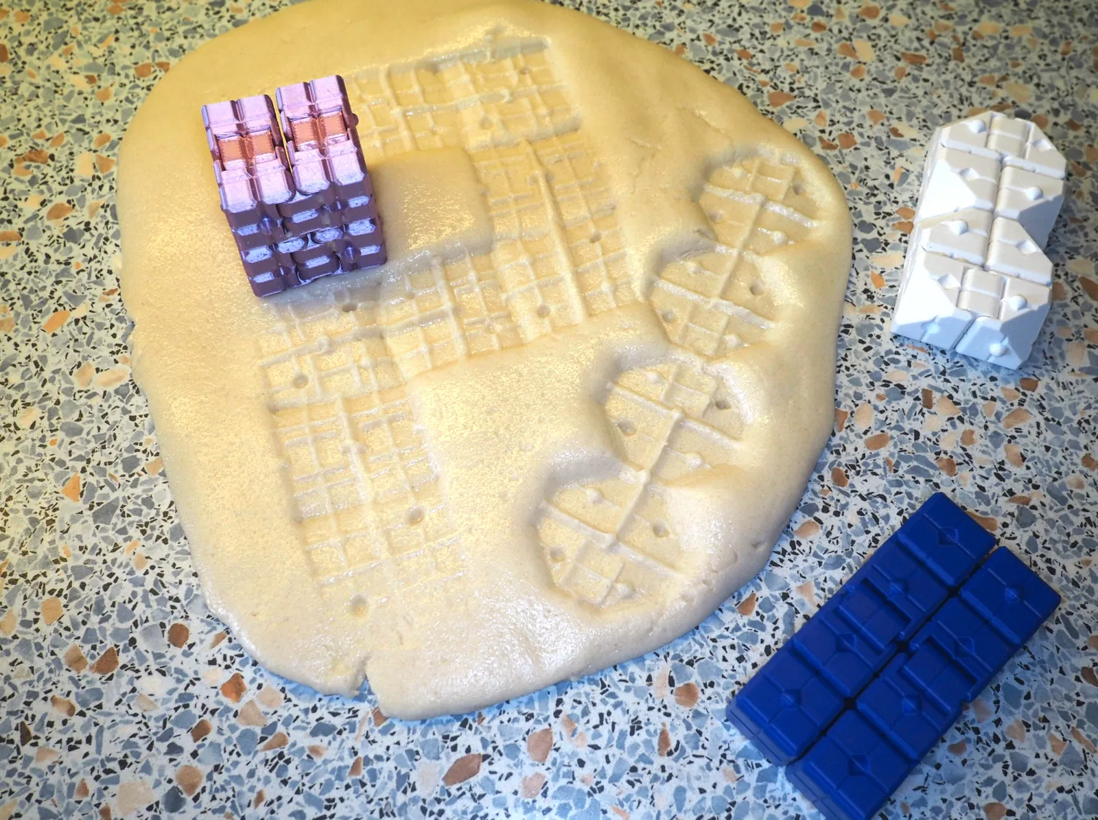Thiết kế của khối Fidget này bao gồm các chi tiết dạng hình học nổi, cho phép người dùng xoay gập theo nhiều chiều khác nhau, tạo ra cảm giác thỏa mãn khi nghịch trên tay. Điểm đặc biệt của mẫu này chính là bề mặt được khắc họa tiết tinh tế, giúp bạn dễ dàng in dấu lên các loại bột nặn hoặc đất sét dẻo, tạo ra những hoa văn bắt mắt. Đây là món đồ chơi lý tưởng cho cả người lớn lẫn trẻ em để giải tỏa áp lực trong những lúc làm việc hay học tập căng thẳng.