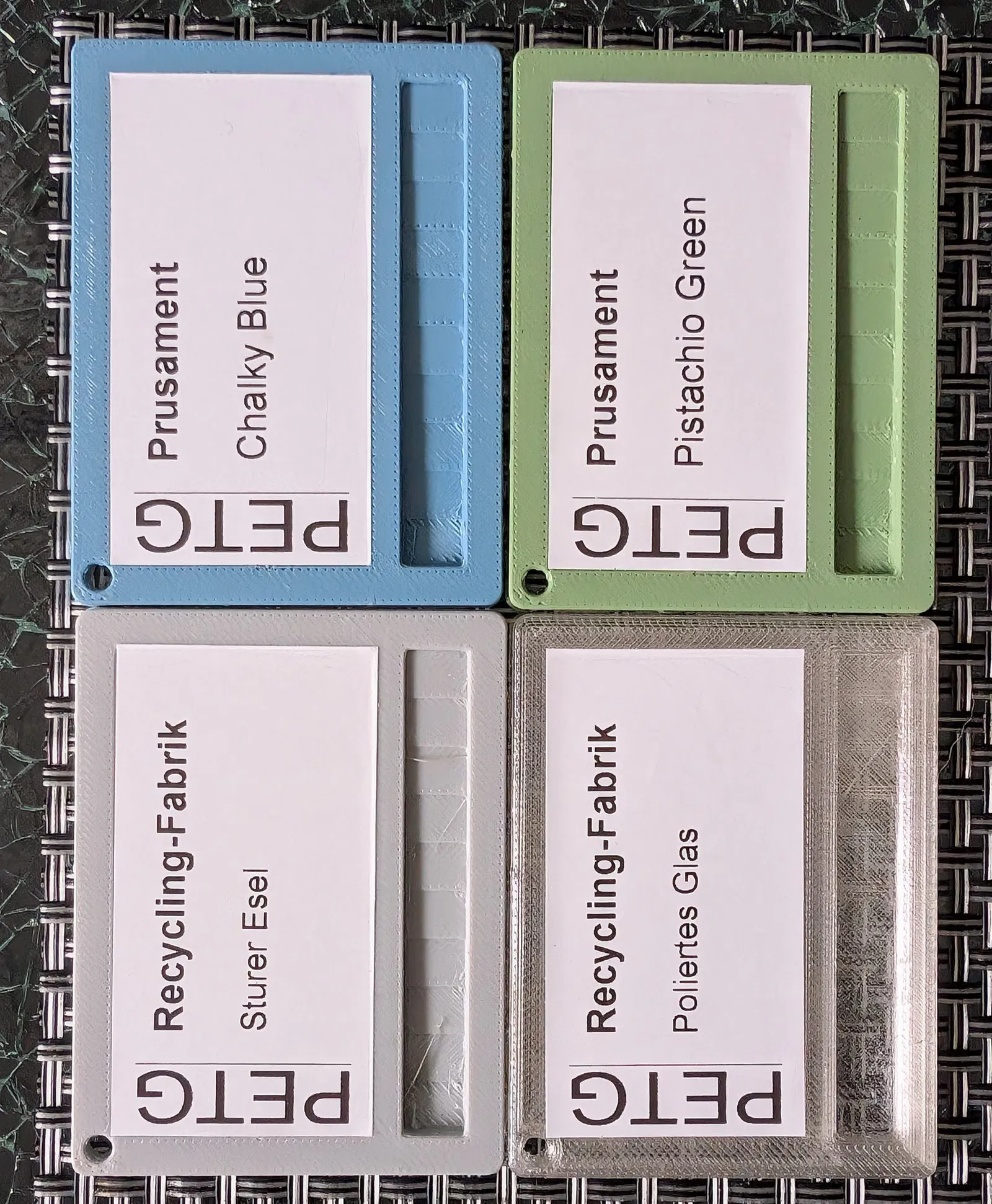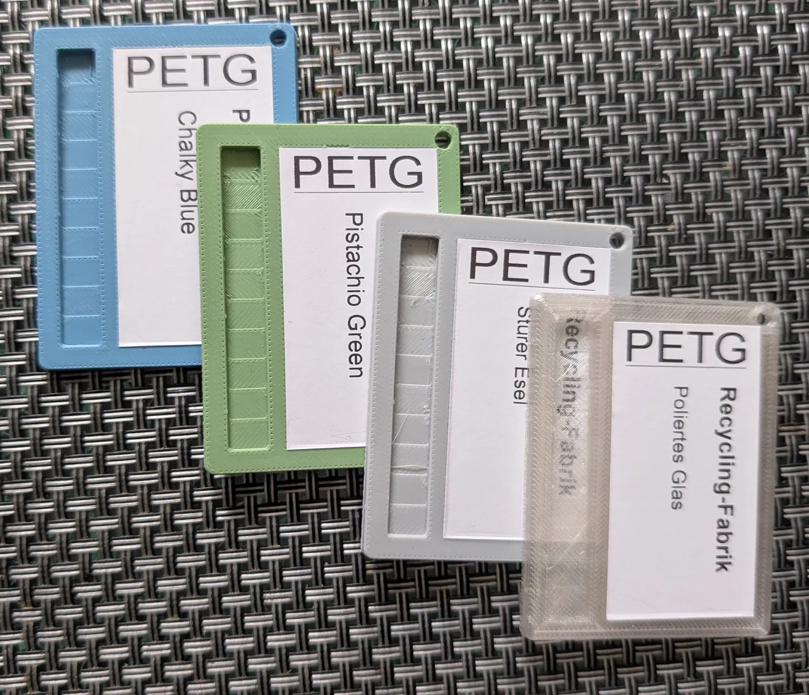 Mẫu swatch in nhựa (filament) được thiết kế để dán kèm nhãn 62mm (P-Touch).