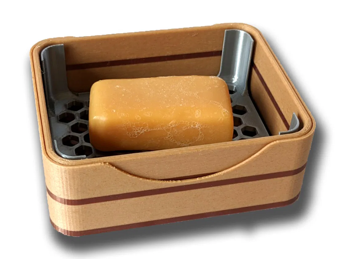 Hộp chứa vừa vặn một bánh xà phòng kích thước tiêu chuẩn, phần khay bên trong có thể lật ngược lại khi đóng hộp để cất giữ, đồng thời vẫn nâng bánh xà phòng cách xa đáy hộp giúp xà phòng luôn khô ráo.
