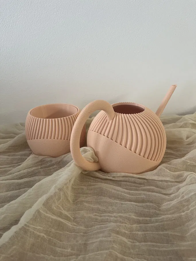 Bộ bình tưới nước và chậu cây hiện đại này là món quà lý tưởng cho bất kỳ ai yêu thích trồng cây. Thiết kế kết hợp giữa những đường cong mềm mại với kết cấu hình học sắc sảo, mang lại vẻ ngoài tối giản phù hợp với mọi không gian nội thất.