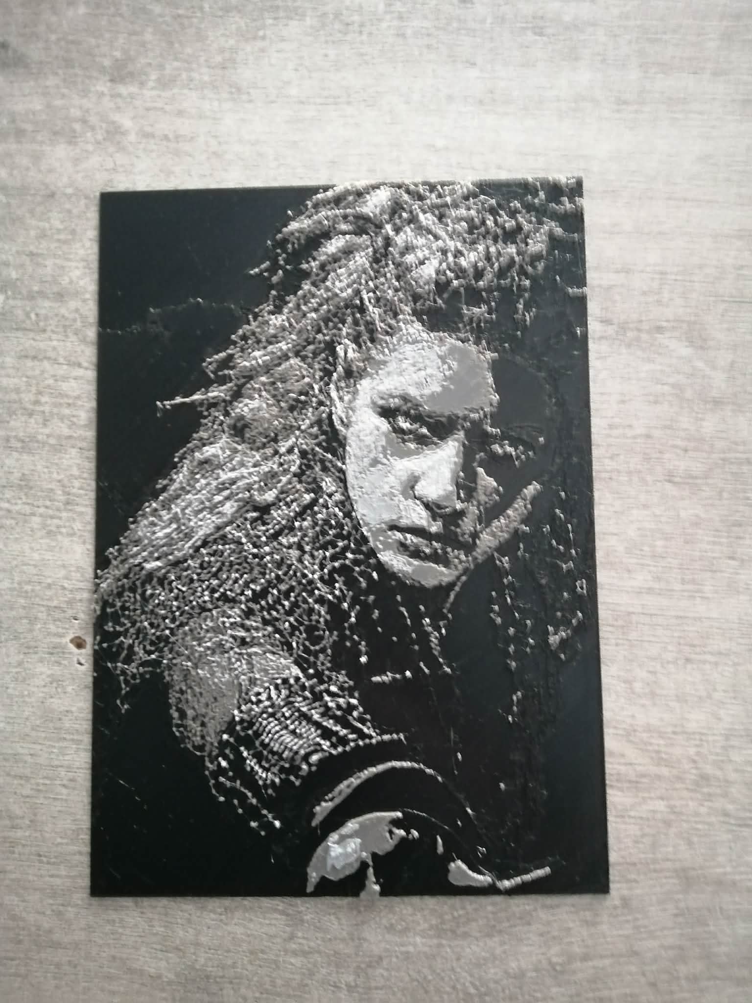 Sản phẩm này không chỉ là một món đồ trang trí đơn thuần mà còn là minh chứng cho sự kỳ diệu của công nghệ in 3D hiện đại. Khi ánh sáng chiếu vào, sự chuyển đổi giữa các lớp nhựa màu đen, xám và trắng tạo ra những mảng đổ bóng vô cùng chân thực, khiến bức tranh trông giống như một tấm hình nghệ thuật đen trắng được chạm khắc tỉ mỉ. Bạn hoàn toàn có thể sử dụng bức tranh này để làm điểm nhấn trang trí trên bàn làm việc, treo trên tường trong phòng khách hoặc làm quà tặng đầy ý nghĩa cho những người yêu thích phim ảnh và phong cách nghệ thuật cá tính.