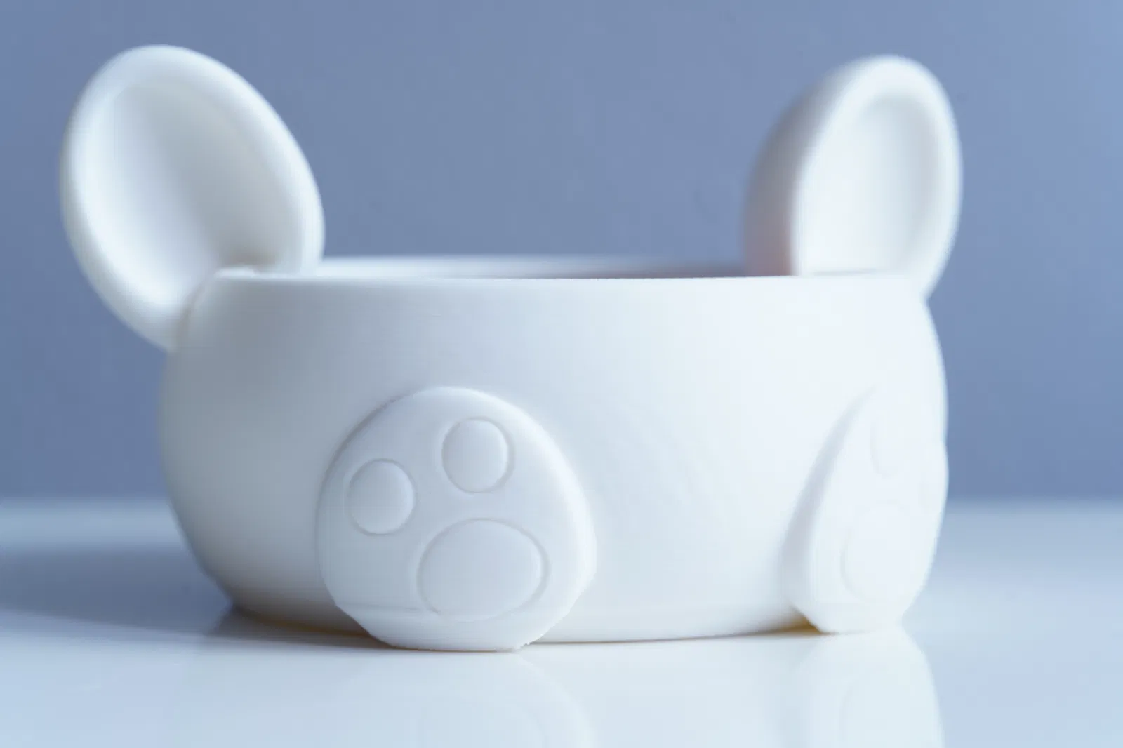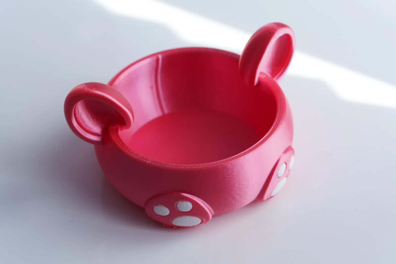 Thiết kế: Tô tròn với phần tai và dấu chân được tích hợp sẵn.