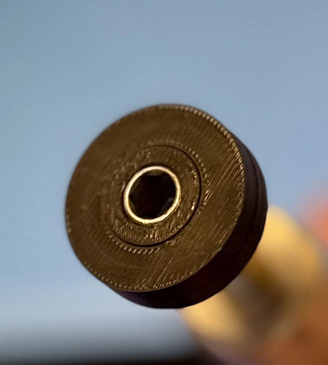 Sau khi in xong, hãy dùng một vật gì đó như thanh 10mm (hoặc tua vít như mình chẳng hạn) xỏ vào lỗ và lắc nhẹ để nới lỏng các khớp. Khi nó bắt đầu quay trơn tru là bạn đã thành công. Bạn có thể thêm một chút dầu bôi trơn nếu muốn, hoặc cứ thế mà dùng thôi, mình thấy để khô vẫn quay khá tốt.