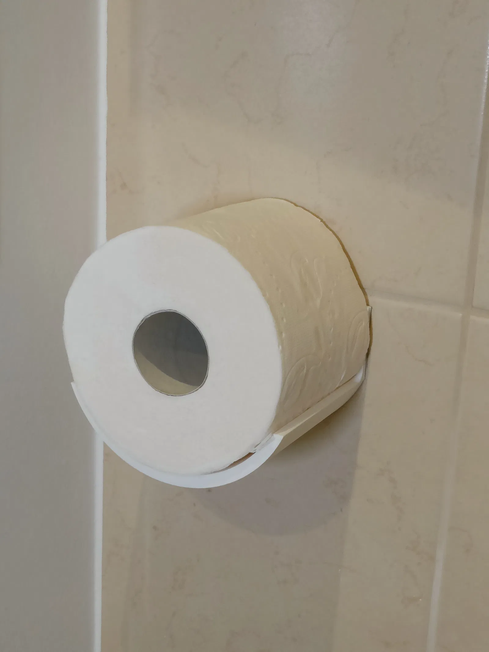 Đây là kệ đựng giấy vệ sinh có thể ghép nối lại với nhau thành một chồng! Kệ được gắn bằng băng keo hai mặt bản rộng 19mm (như đã đánh dấu trong ảnh).