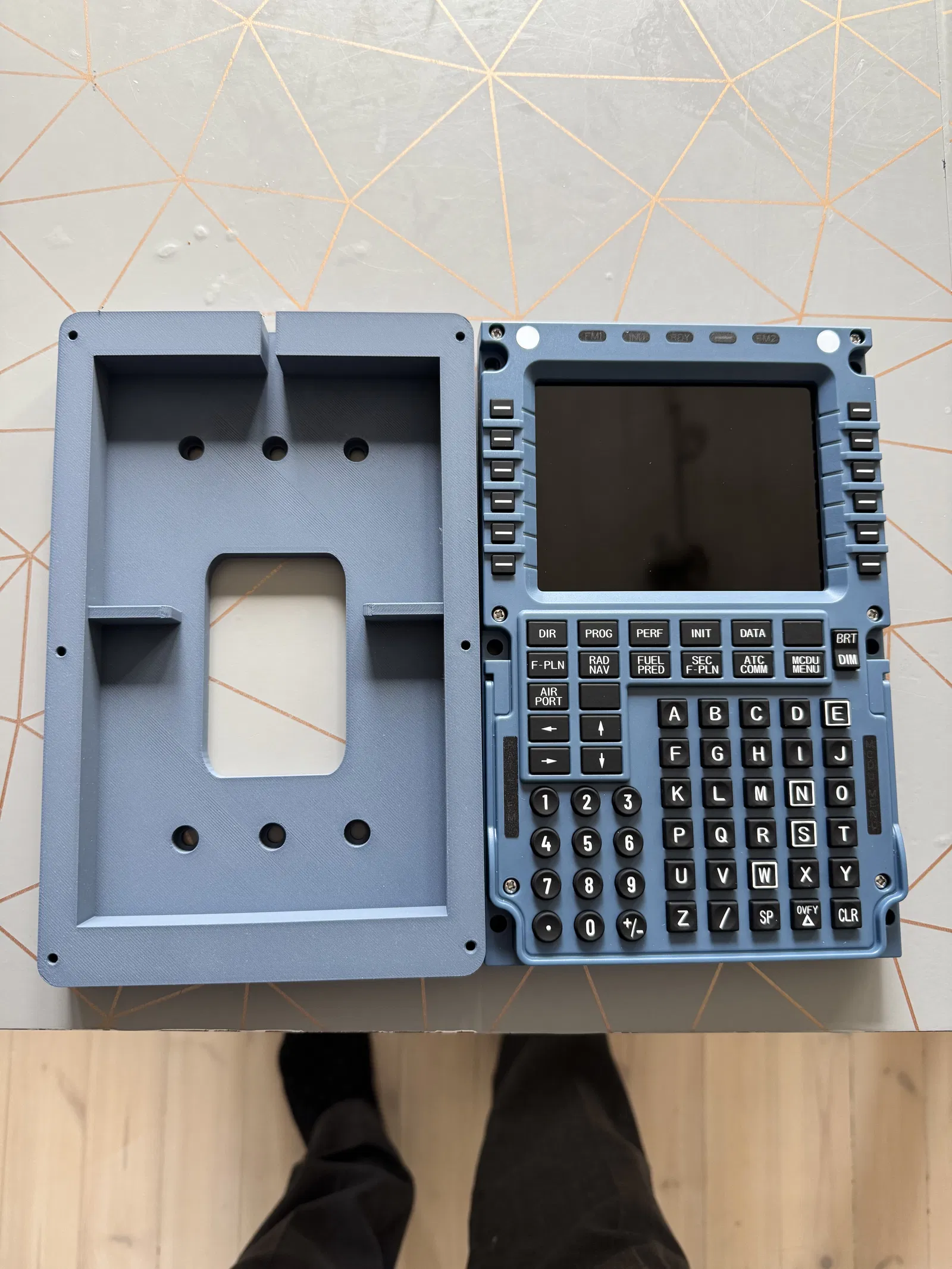 Lấy cảm hứng từ thiết kế WinWing MCDU Case của Der_Onkel: https://makerworld.com/en/models/1108268-winwing-mcdu-case#profileId-1104378. Phần ngàm gắn MCDU này có cơ chế tương tự như mẫu của Der Onkel, nhưng được thiết kế lại để lắp trực tiếp vào khung nhôm định hình (aluminium extrusion) của bộ Sim Rig. Phần ngàm này được làm dày hơn để tạo các lỗ âm (recessed holes) cho ốc M6, đồng thời các góc cũng được bo tròn vì vị trí lắp đặt của mình ngay tầm đầu gối, mà các góc in 3D bình thường thì khá sắc bén. Mọi chi tiết được đo đạc chuẩn xác nên không cần bắt ốc MCDU vào ngàm vẫn giữ chắc chắn. Thông số in khuyến nghị: 5 perimeters, 35% gyroid infill. Loại nhựa mình dùng là ESUN Dark Matte Grey e-PLA.