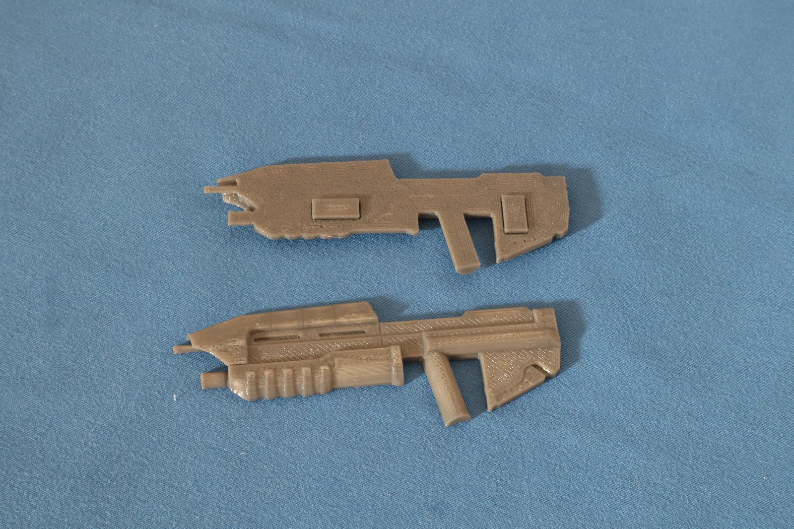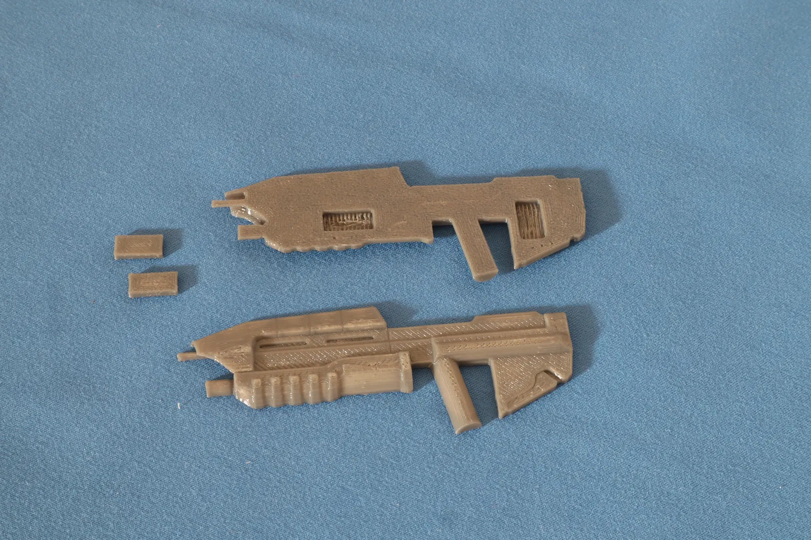 Sử dụng công cụ hỗ trợ chốt để lắp các chốt vào mô hình. Đặt chốt vào công cụ, dùng ngón cái ấn mạnh chốt vào ổ khóa trên mô hình. Sau khi lắp chốt vào khung, bạn có thể gắn các mảnh giáp lên. Súng MA5B được in làm hai nửa và cần keo để dán lại với nhau. Đặt các chốt hình chữ nhật vào đúng vị trí, cho một ít keo rồi ép hai nửa lại với nhau. Nếu bạn có bất kỳ câu hỏi nào về việc in hoặc lắp ráp, hãy để lại bình luận nhé. Chúc bạn vui vẻ!