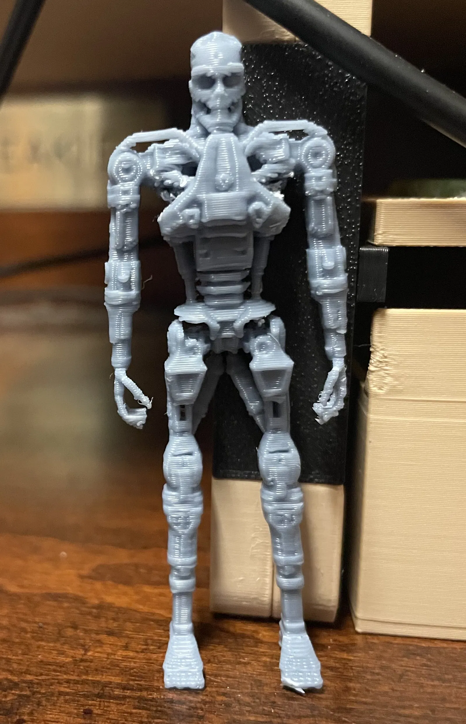 Mô hình chi tiết này tái hiện bộ khung xương T-800 kinh điển ở kích thước nhỏ, cực kỳ phù hợp để trưng bày trên kệ hoặc làm sa bàn. Anh em nên in bằng nhựa màu bạc hoặc chrome để có hiệu ứng đẹp nhất. Nên in theo chiều đứng, thêm support kiểu cây (tree supports) và cẩn thận khi tháo gỡ. Có thể cần xoay mô hình 90 độ và tăng kích thước lên 300-400% nhé.