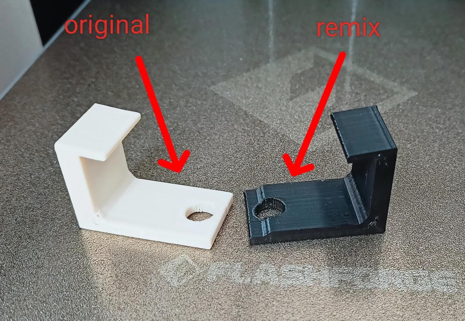 Vì vậy, mình đã làm lại một cái kẹp gần như y hệt dựa trên kích thước của bản gốc, nhưng mình có thêm một khe hở nhỏ để việc tháo kẹp ra khỏi bàn in trở nên dễ dàng hơn.