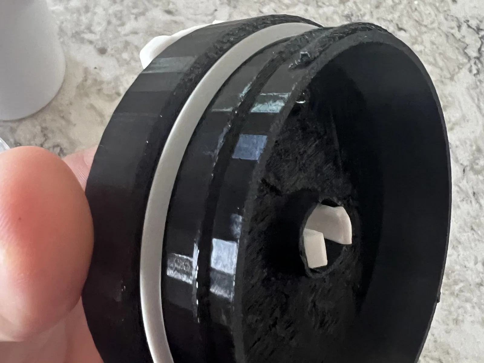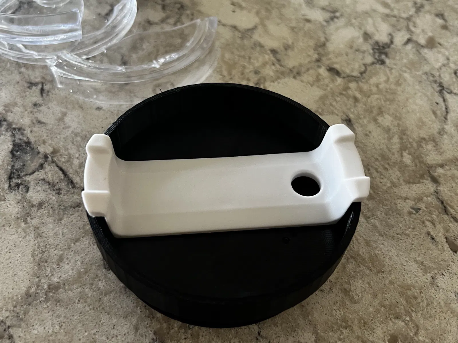 Tôi đã tái sử dụng phần trung tâm từ nắp hiện có vì nó không bị hư hại trong tai nạn. Phiên bản 2.0 sẽ bao gồm một phần trung tâm thay thế với một miếng TPU.