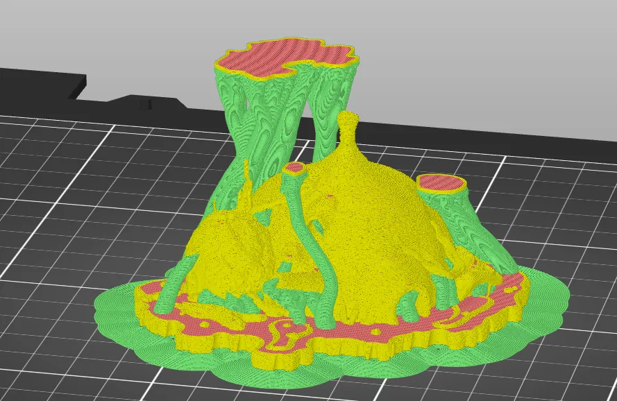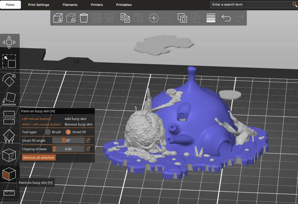 Ngoài ra, bạn có thể dùng thêm brims lớn và tính năng fuzzy skin để tạo vẻ ngoài "gồ ghề" cho vùng đầm lầy. "Paint-on-fuzzy skin" rất hữu ích để chỉ thêm hiệu ứng này vào một vài vị trí nhất định. Hãy thử điều chỉnh thông số để có lớp vân bề mặt ưng ý.