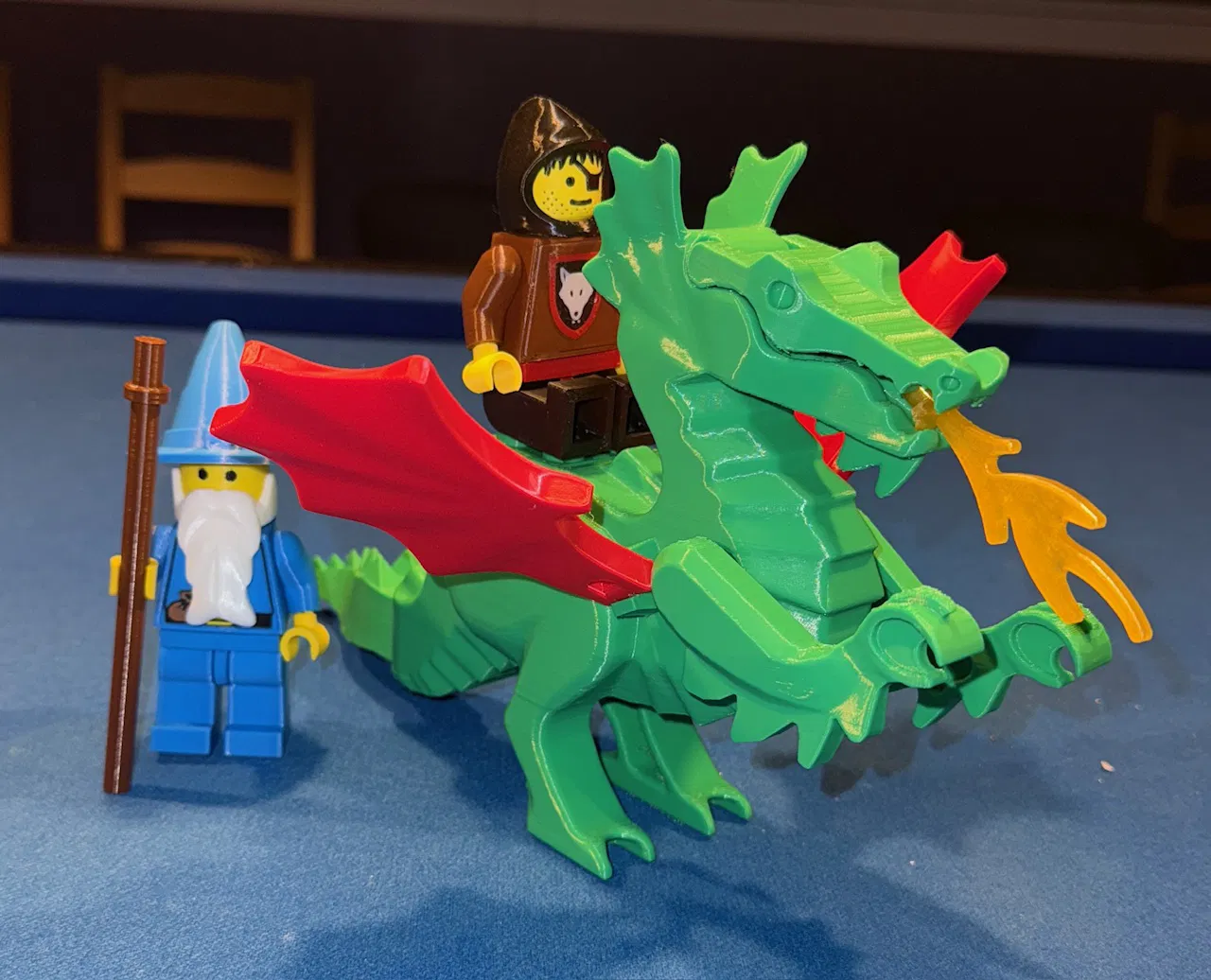 Đây là bộ mảnh ghép giúp bạn dựng lại các nhân vật như rồng, Majisto Wizard, và Wolfpack - Eye Patch ở tỉ lệ 250%. Tất cả đều nằm trong bộ Fire Breathing Fortress ra mắt năm 1993. Các file STL cần thiết đã được đưa vào thư mục "stl files" bên dưới. Với những ai dùng máy in Bambu, mình có để sẵn các file dự án trong thư mục "Bambu Projects" để tiện in ấn hơn. Các file này đã được đặt ở hướng in tối ưu và tô màu sẵn. Lưu ý bạn cần có BambuStudio để mở file. Các nhân vật này được biến tấu từ mẫu Brick MegaFigure của Julia Ebert với những thay đổi: Giảm tỉ lệ 25% để khớp với các mảnh tiêu chuẩn ở tỉ lệ 2.5:1. Thân được chỉnh sửa để có hốc chứa sticker (bạn cần dán sticker vào vị trí này). Phần eo, tay và bàn tay được sửa lại để in kèm chốt nối (cần dùng support nhưng không cần dán keo). Loại bỏ các chốt rời do không còn cần thiết. Hướng dẫn lắp ráp cơ bản xem tại bài đăng của Julia. Cảm ơn Julia đã chia sẻ! Các phụ kiện được lấy từ hồ sơ Printables của thall72 và phóng to 250%. Nếu muốn tùy biến thêm, bạn có thể tham khảo thư viện khổng lồ của anh ấy. Một vài lưu ý nhỏ: Chúng mình gọi tỉ lệ này là 'action-sized' vì kích thước tương đương với mô hình tỉ lệ 1:18. Ở tỉ lệ này, in với 4 đường viền (perimeters) và 40% infill là tối ưu nhất. Thân rồng có lỗ rỗng - chúng mình giữ nguyên để đúng với thiết kế gốc, in bằng tree-supports và để nguyên support bên trong. Bạn có thể thử Slicing Mode là "Close Holes" nếu muốn lấp đầy phần này. Nếu bạn in thành công, hãy chia sẻ hình ảnh và nhấn nút "like" cho thiết kế này nhé! Chúc mọi người in vui vẻ!! Lưu ý: Mô hình này là sản phẩm tự chế của fan và chỉ dành cho mục đích cá nhân. Chúng mình không liên kết với bất kỳ thương hiệu chính thức nào, nghiêm cấm mua bán file kỹ thuật số hoặc bản in vật lý.