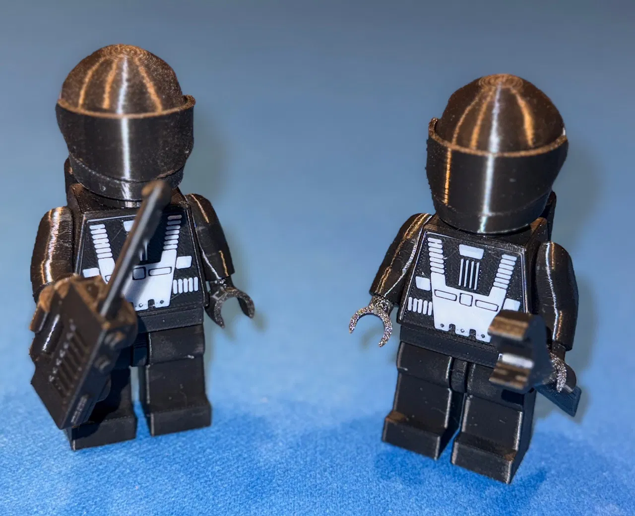 Đây là bộ các mảnh ghép để bạn có thể tự tay lắp ráp mô hình nhân vật Classic Space Blacktron I với tỷ lệ phóng đại 250%. Nhân vật này xuất hiện lần đầu vào năm 1987 và góp mặt trong rất nhiều bộ lắp ráp từ năm 1987 đến 2024. Tất cả các tệp STL cần thiết đã được đính kèm trong thư mục "stl files" bên dưới. Nếu bạn dùng máy in Bambu, mình có để sẵn file dự án trong thư mục “Bambu Projects” để việc in ấn dễ dàng hơn. File này đã được thiết lập sẵn hướng in tối ưu và tô màu cho các bộ phận. Bạn sẽ cần BambuStudio để mở file này. Mô hình này được tùy chỉnh (remix) từ bản gốc Brick MegaFigure của Julia Ebert với những thay đổi: Các bộ phận được thu nhỏ 25% để khớp với tỷ lệ 2.5:1. Phần thân (torso) đã được sửa đổi để có hốc chứa sticker (bạn cần dán cố định miếng sticker này vào). Phần eo, tay và bàn tay được sửa để in kèm với khớp nối (cần dùng support nhưng không cần dán keo). Không còn cần dùng chốt (pins) nữa. Bạn có thể xem hướng dẫn lắp ráp cơ bản tại đây. Các phụ kiện được lấy từ hồ sơ Printables của thall72 và phóng to lên 250%. Một vài lưu ý: Chúng mình gọi kích thước này là 'action-sized' vì nó tương đương các mô hình action figure tỷ lệ 1:18. Để mô hình chắc chắn, mình khuyên bạn nên in với 4 lớp vỏ (perimeters) và độ đặc (infill) 40%. Nếu đã in xong, hãy chụp ảnh khoe thành quả và nhấn like cho thiết kế này nhé. Chúc bạn lắp ráp vui vẻ! LƯU Ý: Nếu bạn tìm kiếm phiên bản kích thước lớn hơn như trong ảnh, hãy xem . Lưu ý: Tất cả mô hình của chúng mình là sản phẩm fan-made dành cho mục đích cá nhân. Chúng mình không liên kết với bất kỳ thương hiệu chính thức nào và nghiêm cấm việc mua bán file kỹ thuật số hoặc sản phẩm in vật lý.