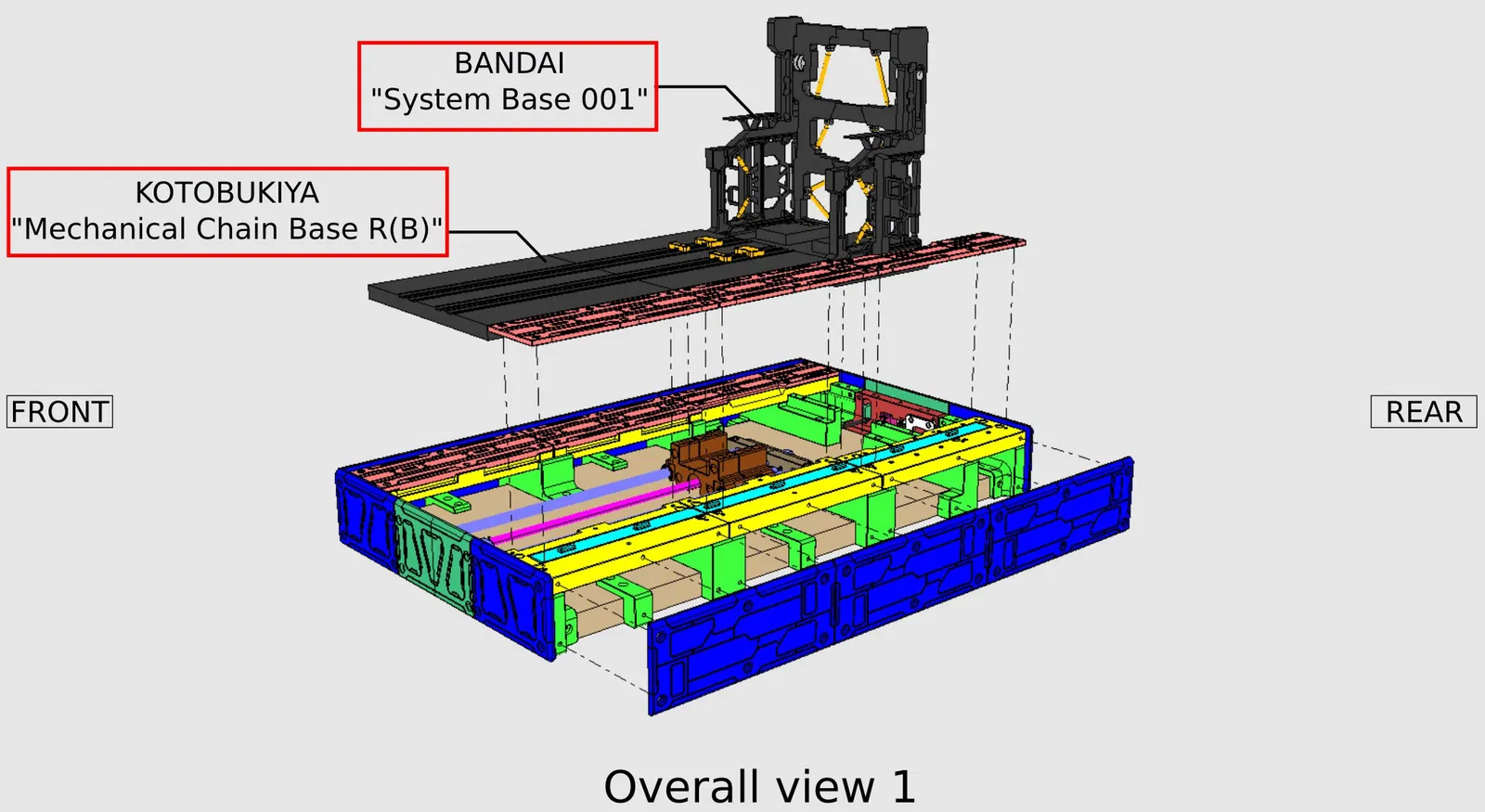 Thân máy ・KOTOBUKIYA "Mechanical Chain Base R(B)" x1 ・BANDAI "System Base 001" x1