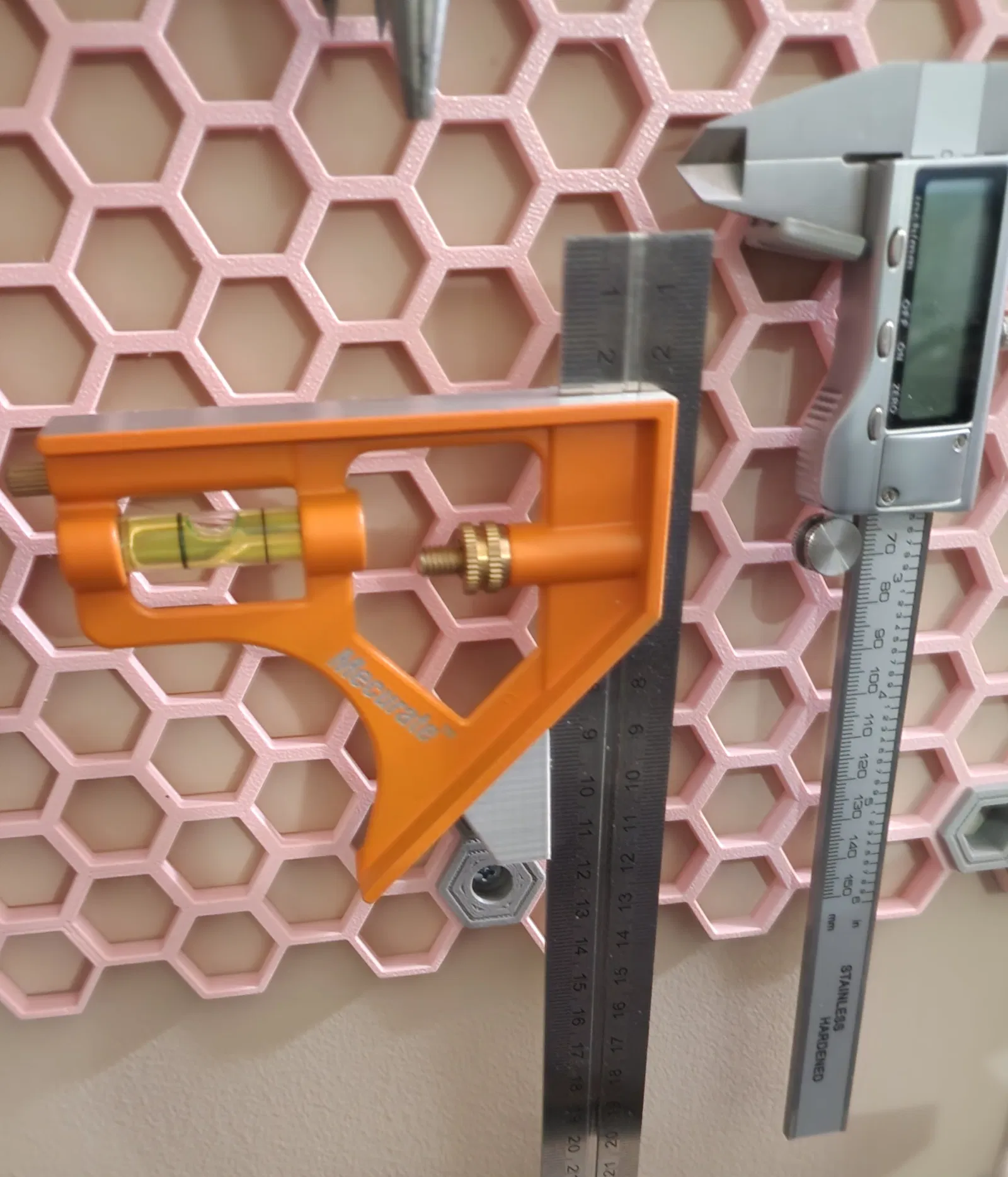 Bạn đang tìm cách để tối ưu hóa không gian làm việc và giữ cho các công cụ đo đạc như thước vuông góc (combination square) luôn trong tầm tay? Mẫu thiết kế giá treo chuyên dụng này là giải pháp hoàn hảo để gắn kết chiếc thước của bạn lên hệ thống bảng treo Honeycomb Storage Wall (HSW) hoặc Multiboard một cách gọn gàng và thẩm mỹ nhất. Không còn cảnh phải lục lọi trong ngăn kéo hay để thước nằm ngổn ngang trên bàn làm việc, giờ đây mọi thứ đều được sắp xếp ngăn nắp trên tường.