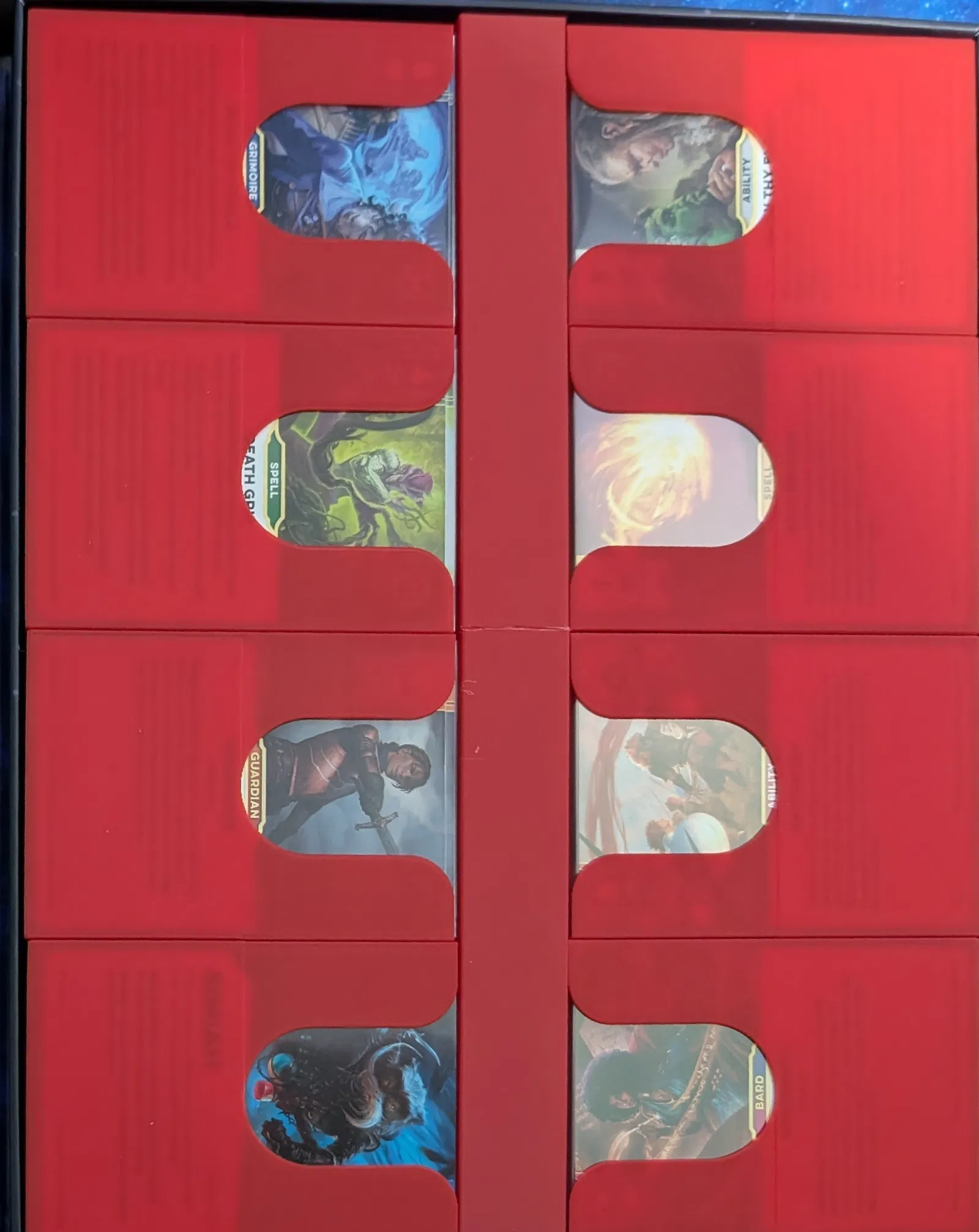 Đây là một mẫu in nhanh để giúp mình cất gọn bộ bài đã bọc sleeve vào trong quyển binder gốc của Daggerheart. Bạn hãy in 8 hộp đựng bài và 2 miếng đệm. Để có kết quả tốt nhất, bạn nên in với độ phân giải 0.2mm. Mỗi hộp đựng được khoảng 45 lá bài nếu xếp chặt, nhưng tốt nhất là chỉ nên để tầm 43-44 lá thôi. Tiếc là không có cách nào hay hơn để phân loại bài giữa 8 cái hộp này, nên bạn sẽ cần chịu khó tìm kiếm một chút. Mẫu này mình làm nhanh để sắp xếp lại cho ngăn nắp thôi. Hình ảnh mình sẽ cập nhật sau nhé.