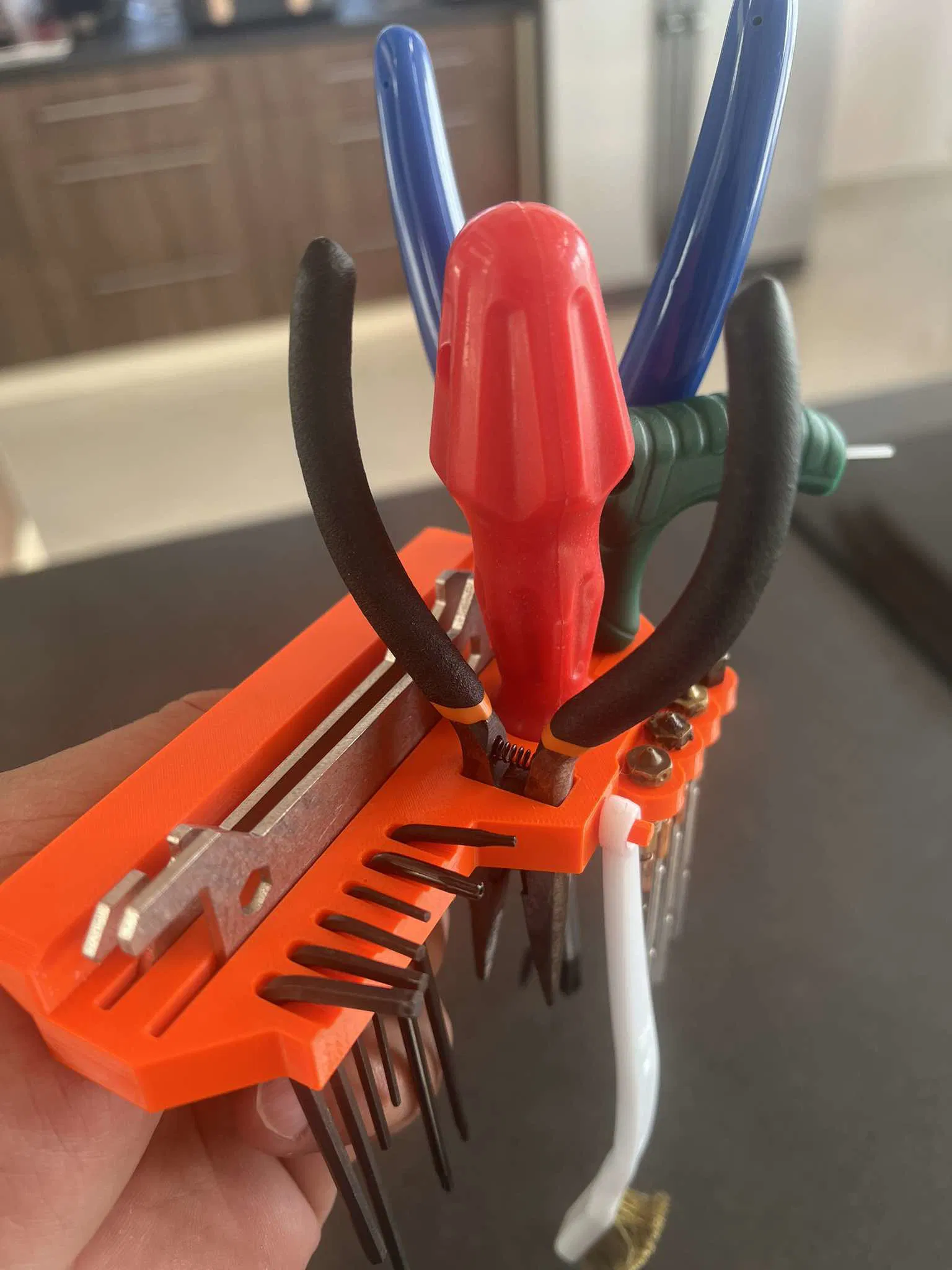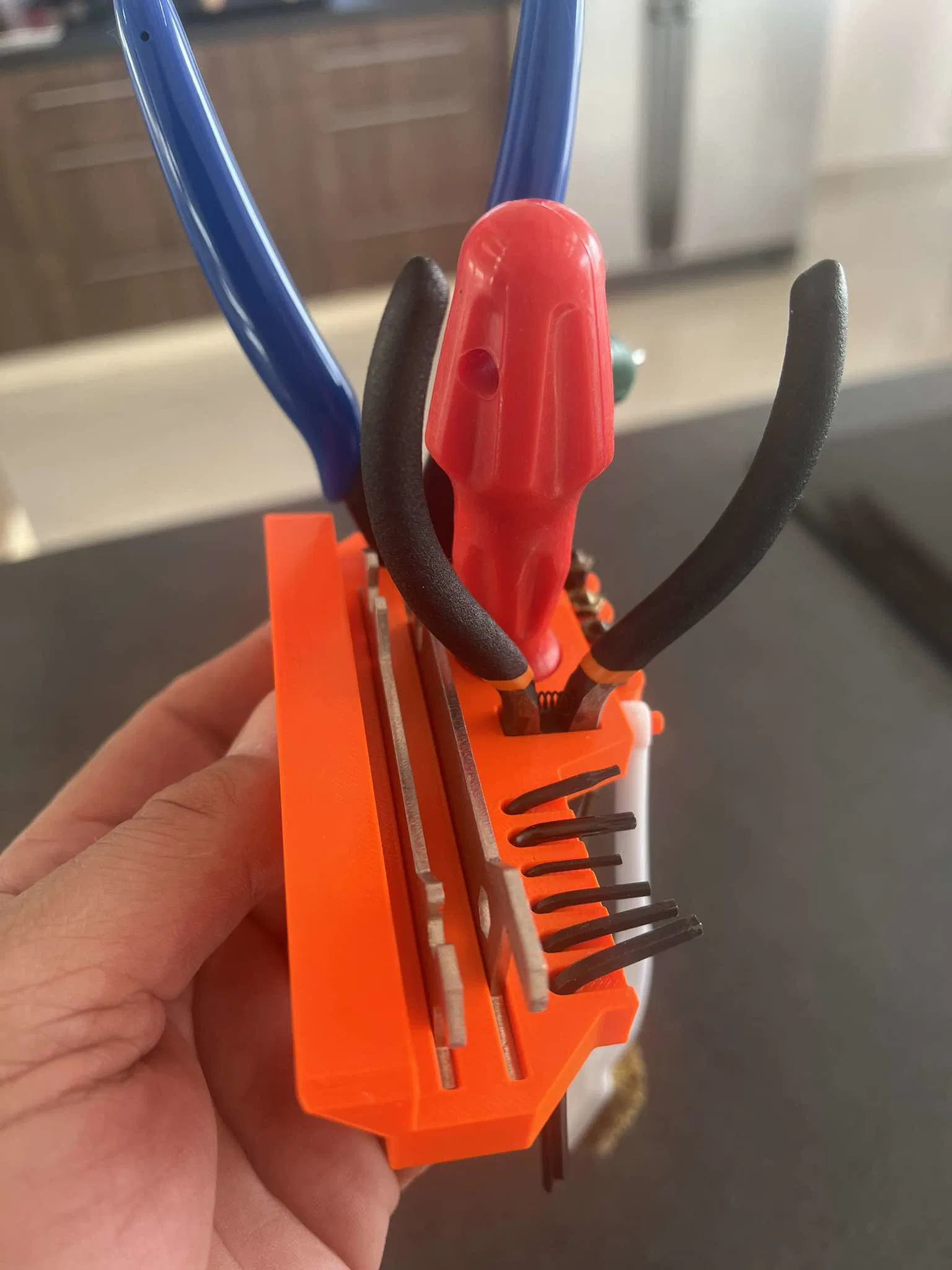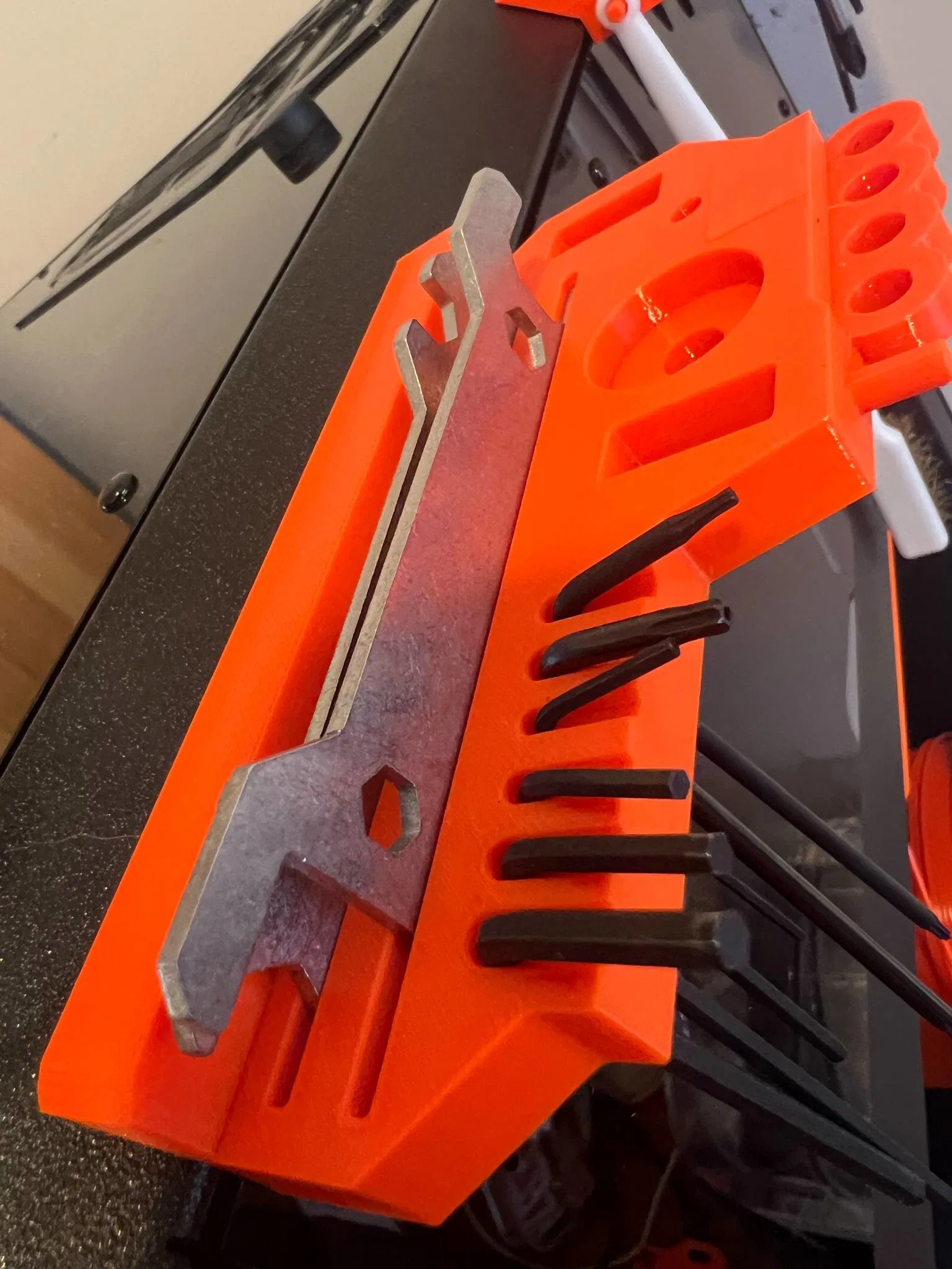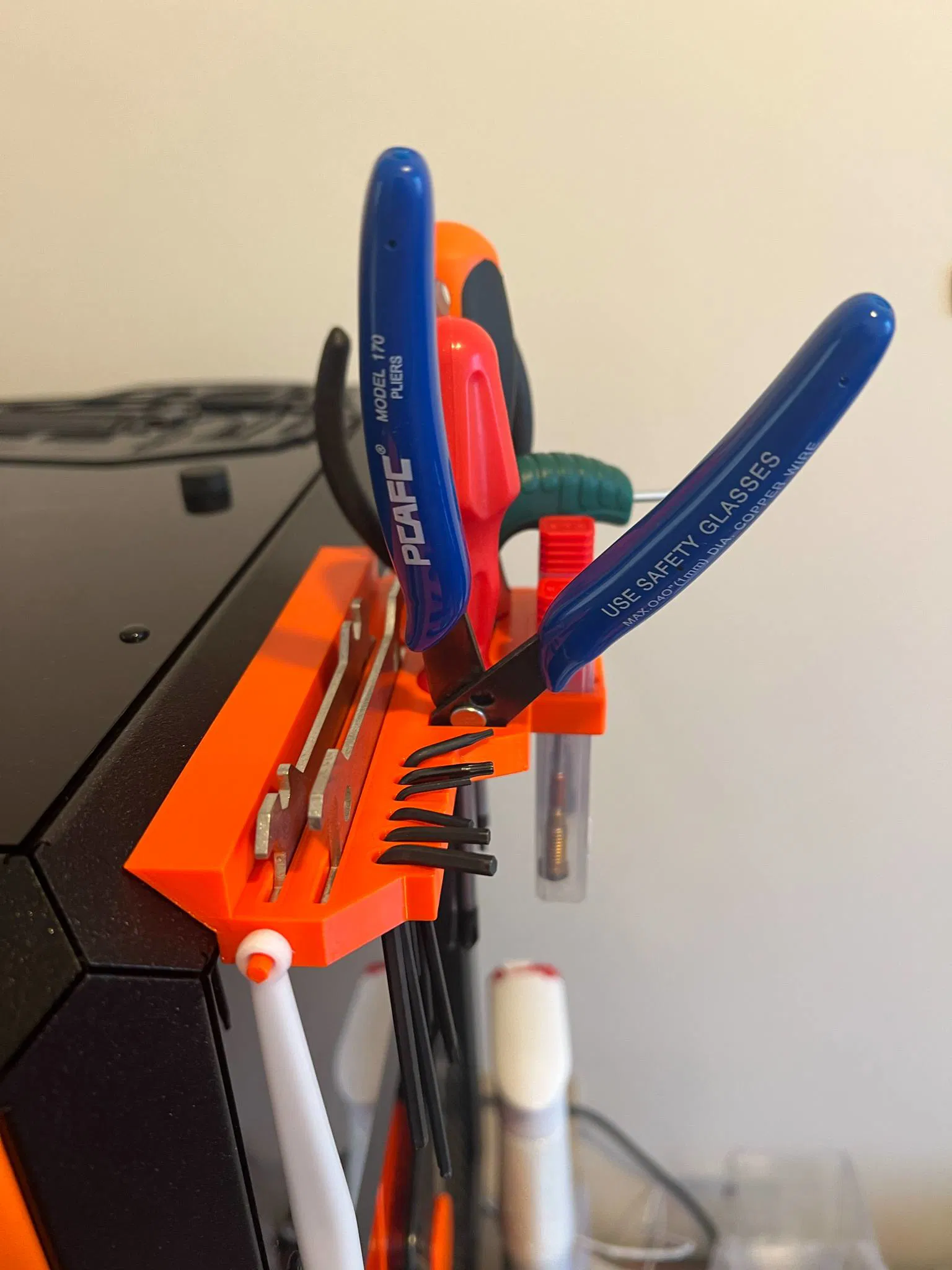 Tôi vừa cập nhật thêm phiên bản V2 với kích thước lớn hơn bản V1, có thêm chỗ để cả hai cây tua vít. Phần giá đỡ đầu nozzle cũng được làm mới và sử dụng nam châm lớn hơn, kích thước 2 viên 50x10x5.